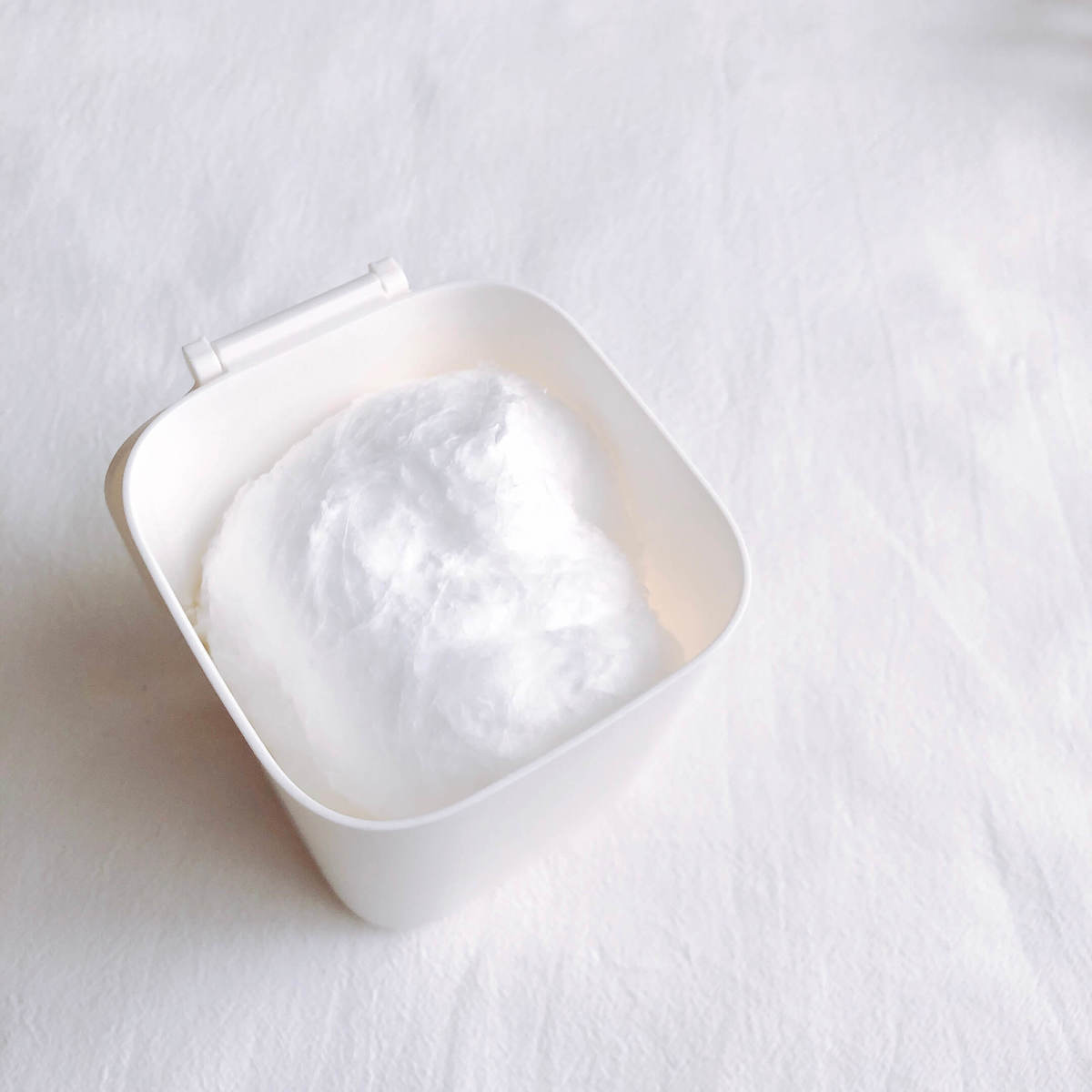 「真っ白でふわふわ」と言えば、やはり思い浮かぶのは「わたあめ」!遊び心で割り箸さしてみたら、それにしか見えません(笑)。