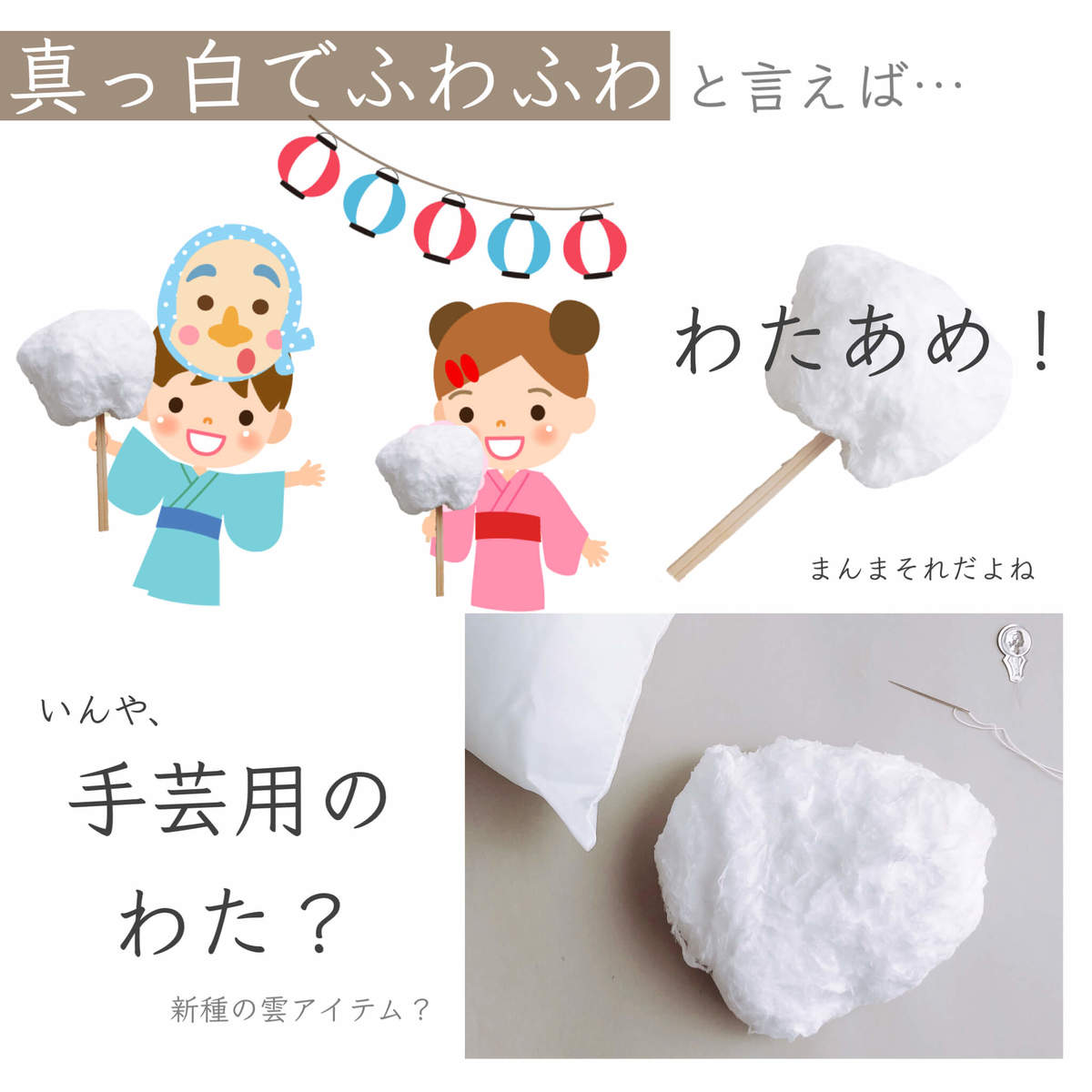 「手芸用のわた」と思った方もいらっしゃるかもしれません。本当に使えそうですよね!