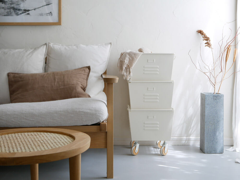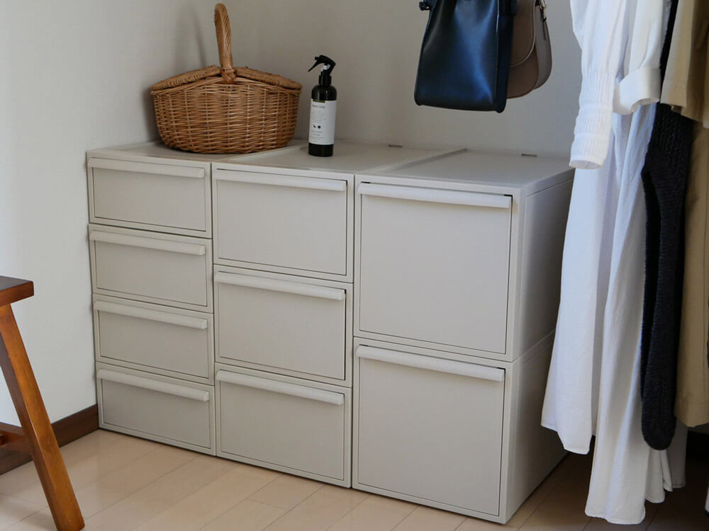 ホワイト、グレー、ベージュと柔らかい3色と質感、無駄のないシンプルなデザインが推し。 中身が見えず生活感を隠すので、衣類の他にも日用品のストックや玩具、下着やパジャマなどをリビングや子供部屋、脱衣所と見える場所にもOK。