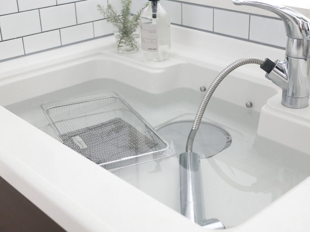 コンロの五徳や鍋、食器など大きい物を一度に洗えるので便利。耐熱温度は100℃と酸素系漂白剤のつけ置き洗いにも安心です。