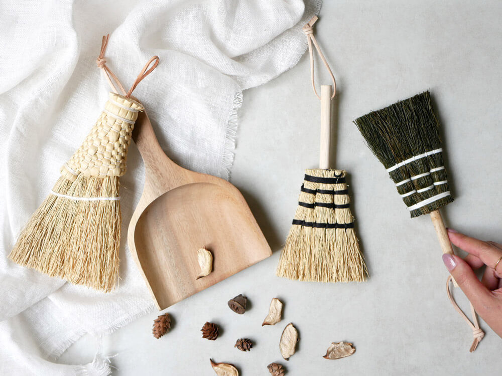 次にご紹介するのは、天然素材で作られた古き良きお掃除道具、ほうきとちりとり。