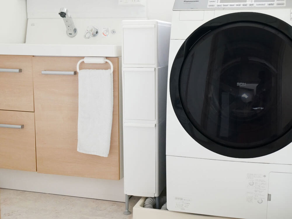 キッチン、ランドリースペース、お手洗いなど、様々な場所のちょっとした隙間に、スッと入る「スリムストレージ」。