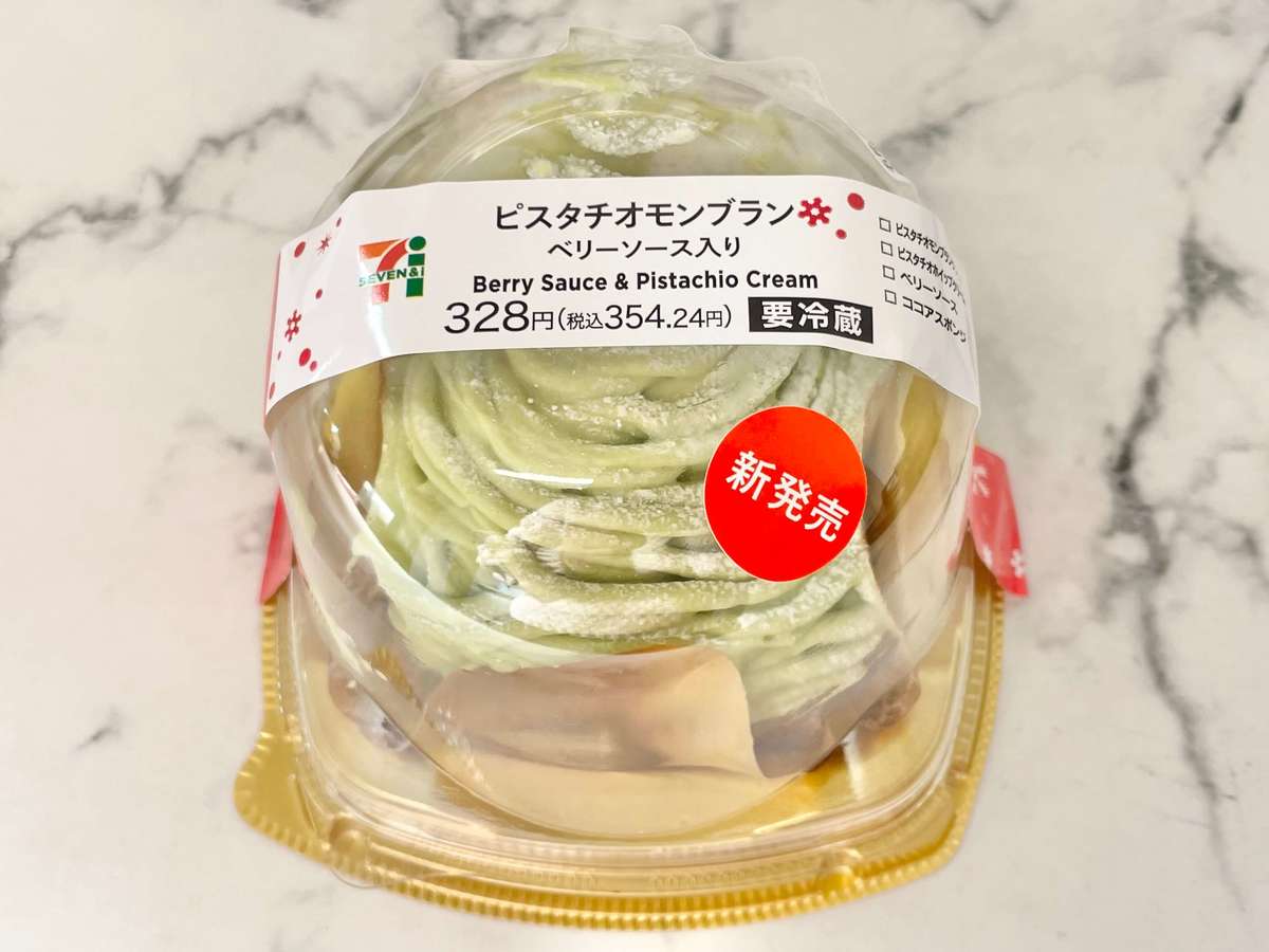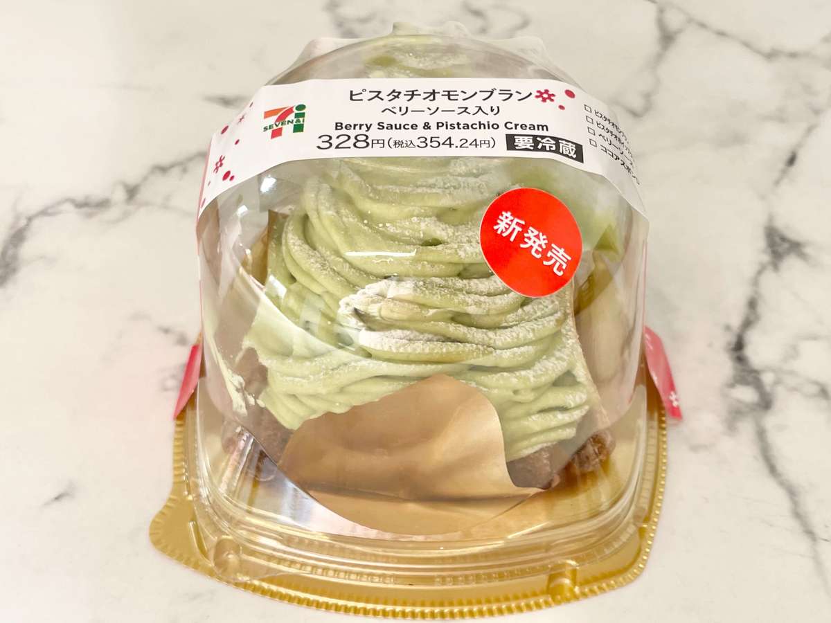 セブンイレブンで購入できる「ピスタチオモンブラン ベリーソース入り」をご紹介しました。