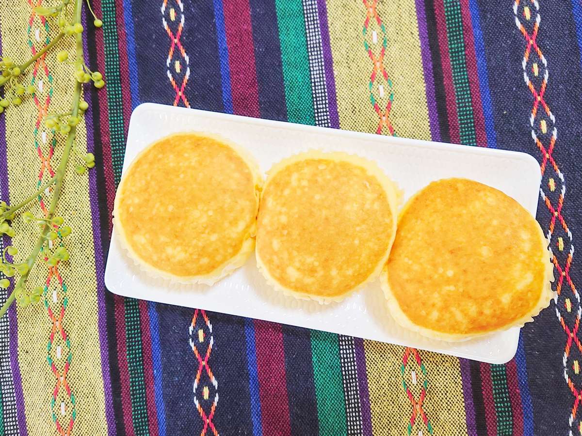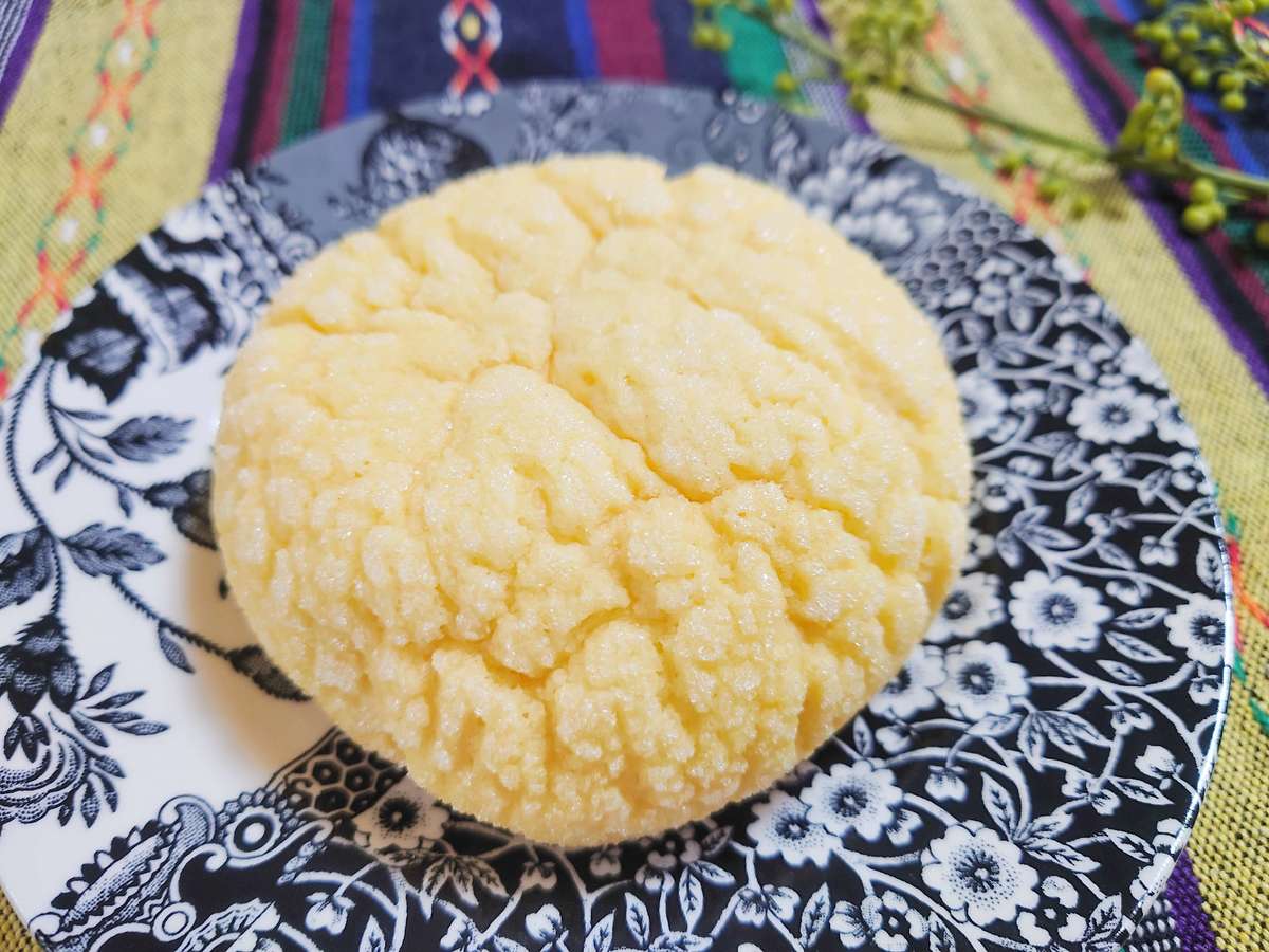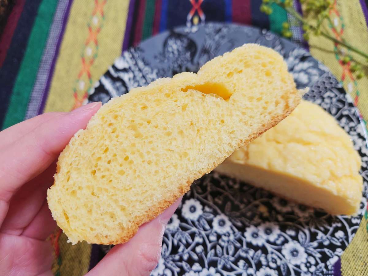 卵色のふんわりとしたふくらみにきつね色の焼き目が何とも美味しそうな蒸しパン。