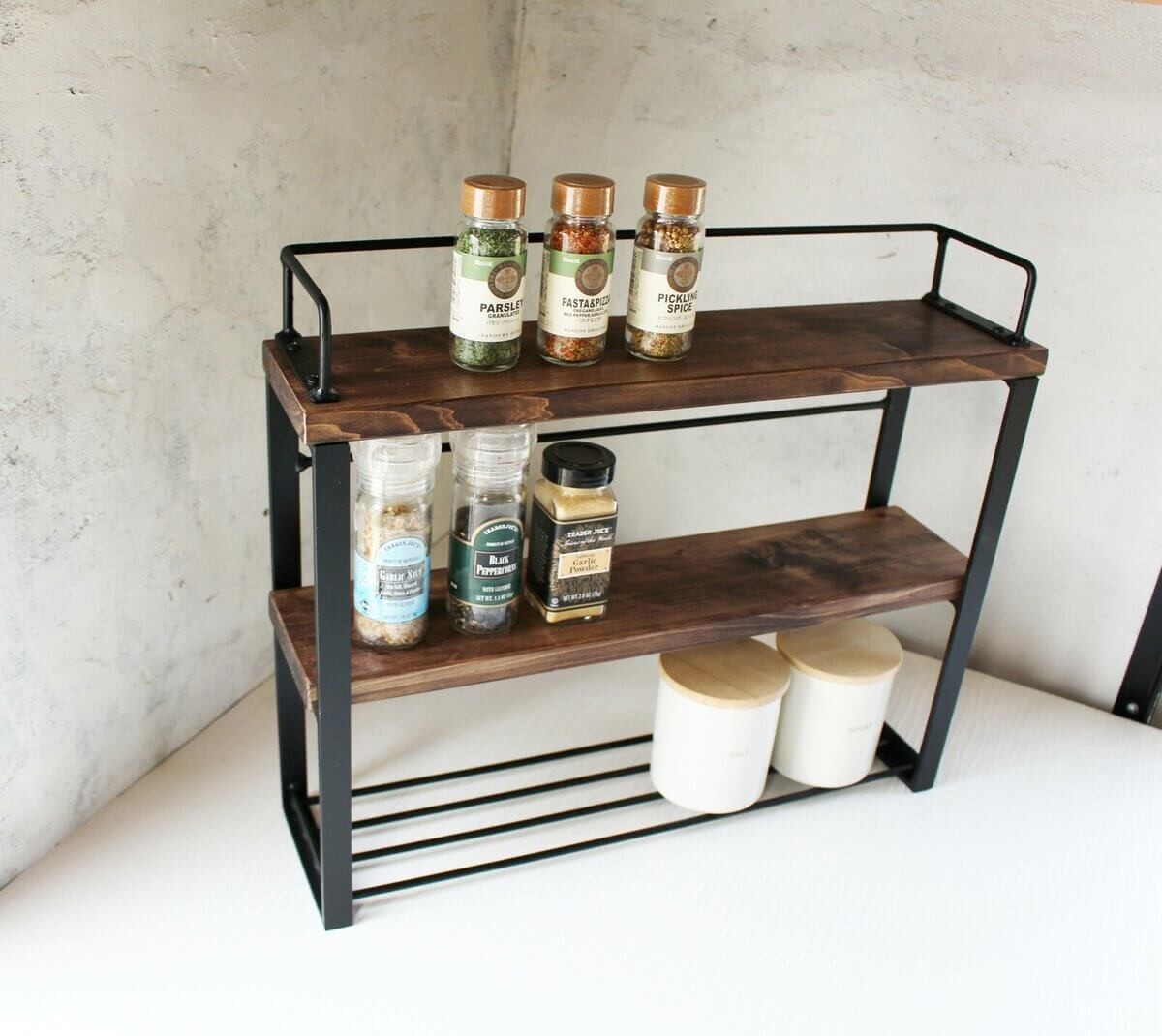棚を置くだけでスパイスの収納力は倍以上!おしゃれな棚があるだけでキッチンに立つのが楽しくなり、毎日の料理の活力にもなりそうですね。