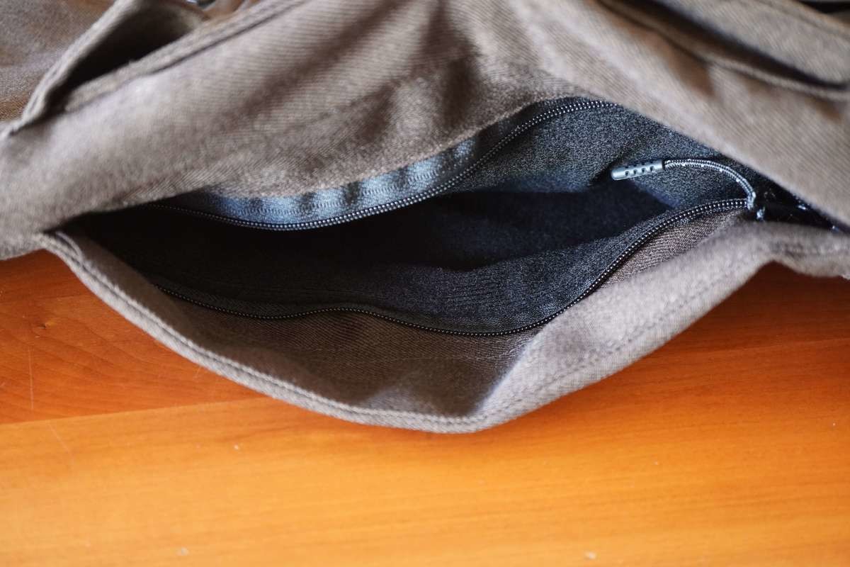 バックポケットにはファスナーがついているので、物が落ちる心配はありません。