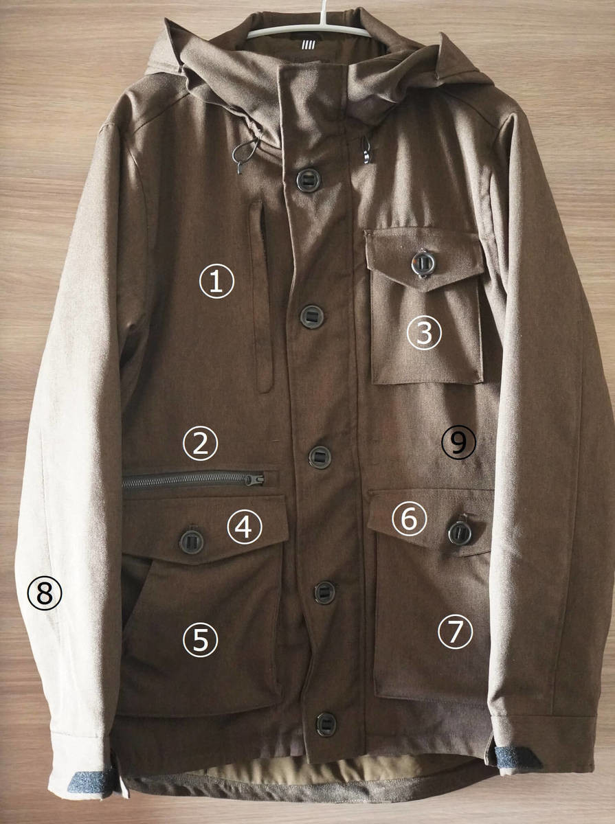 ストレッチ素材で着心地もよく、撥水・撥油・防汚のテフロン加工もされていて、様々なものを入れることができる多彩なポケットもたくさんついていて、サイズ調整もできるこちらのジャケットは2.900円とは思えないほどクオリティーが高い商品です。