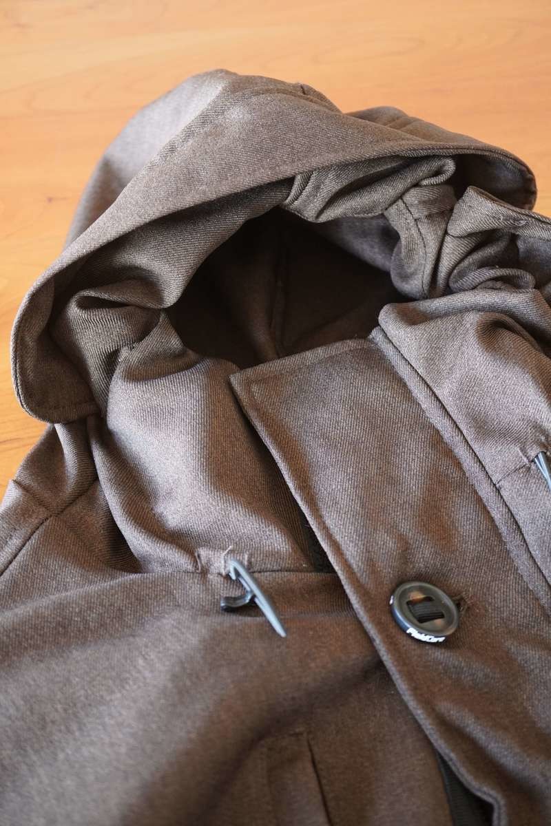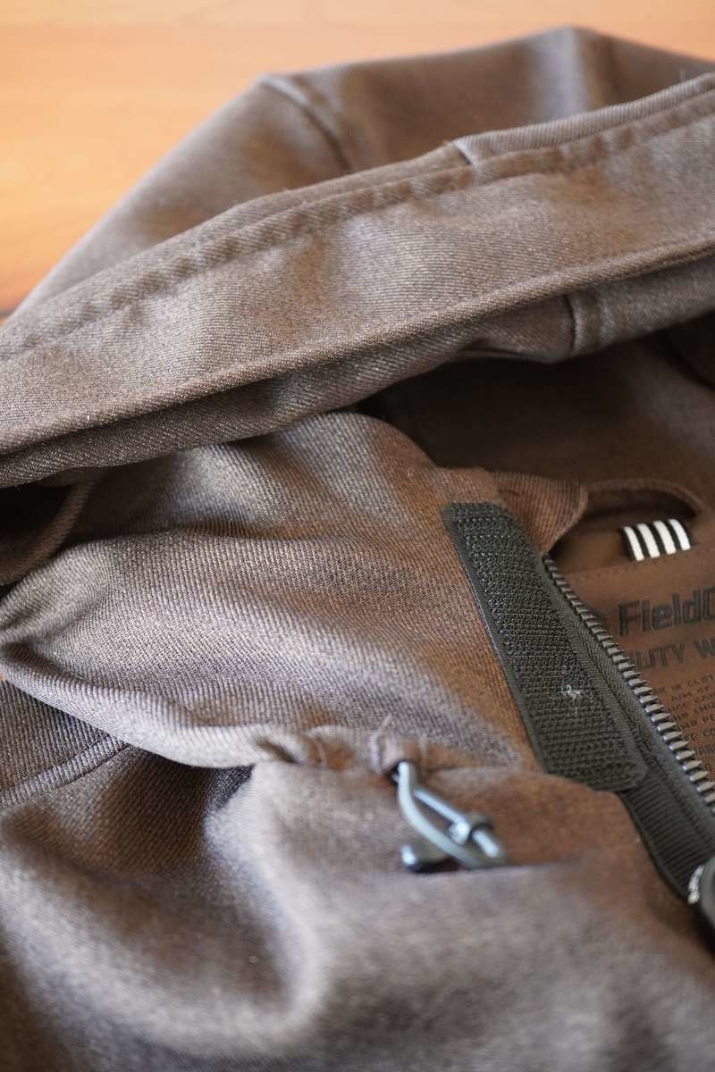 フード部分はドローコードを引くと中の部分だけが絞れるようになっているのでフードのフチはきれいな形を保ったままにできます。