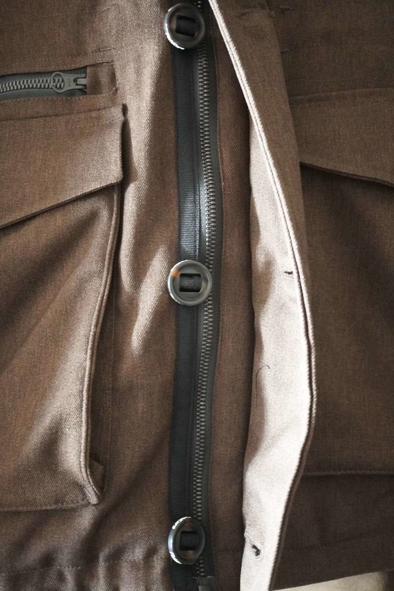 ジャケットの前の部分はファスナーとボタンがついているので、ファスナー・ボタン・ファスナー+ボタンの3種類の止め方ができます。