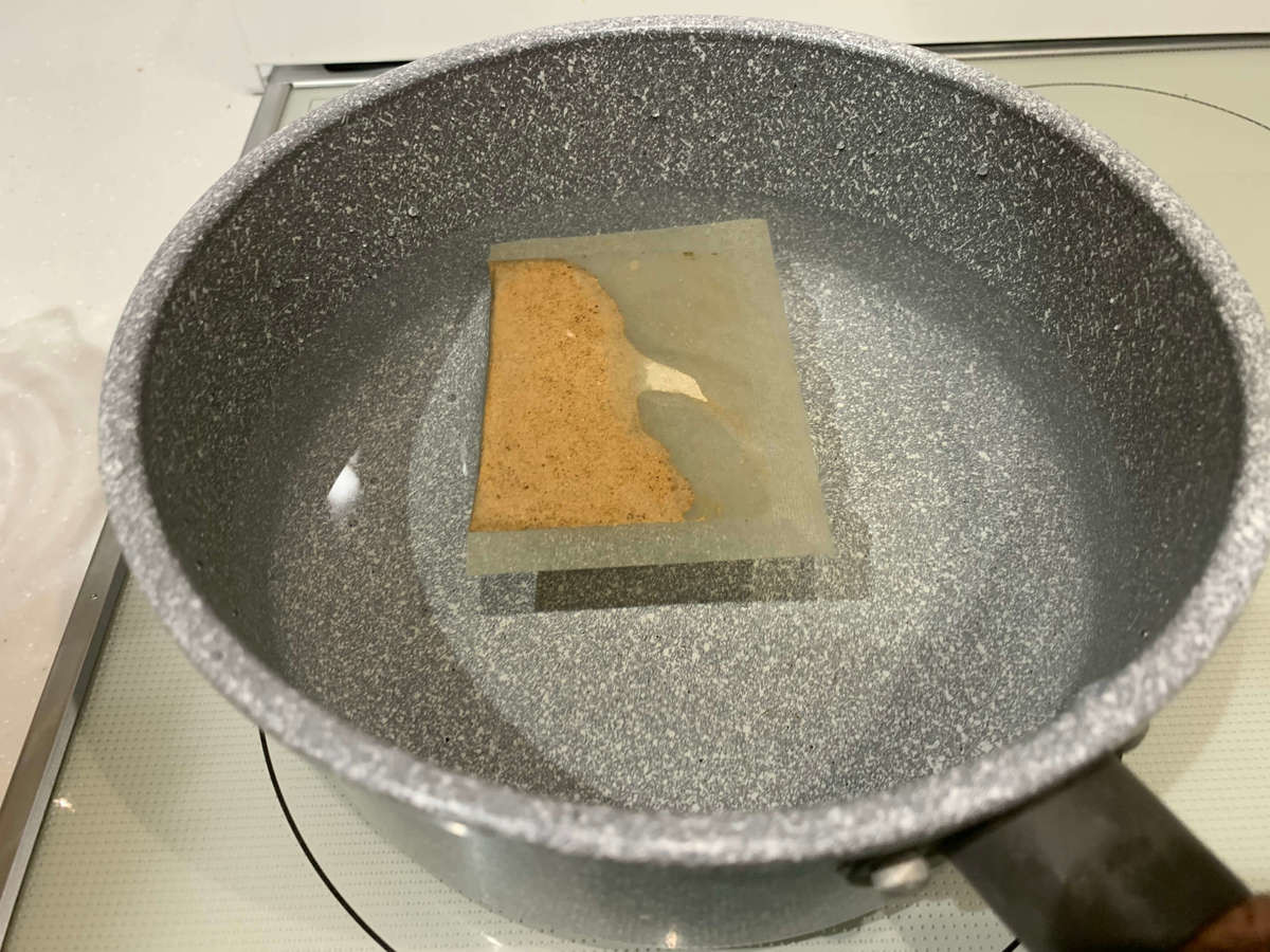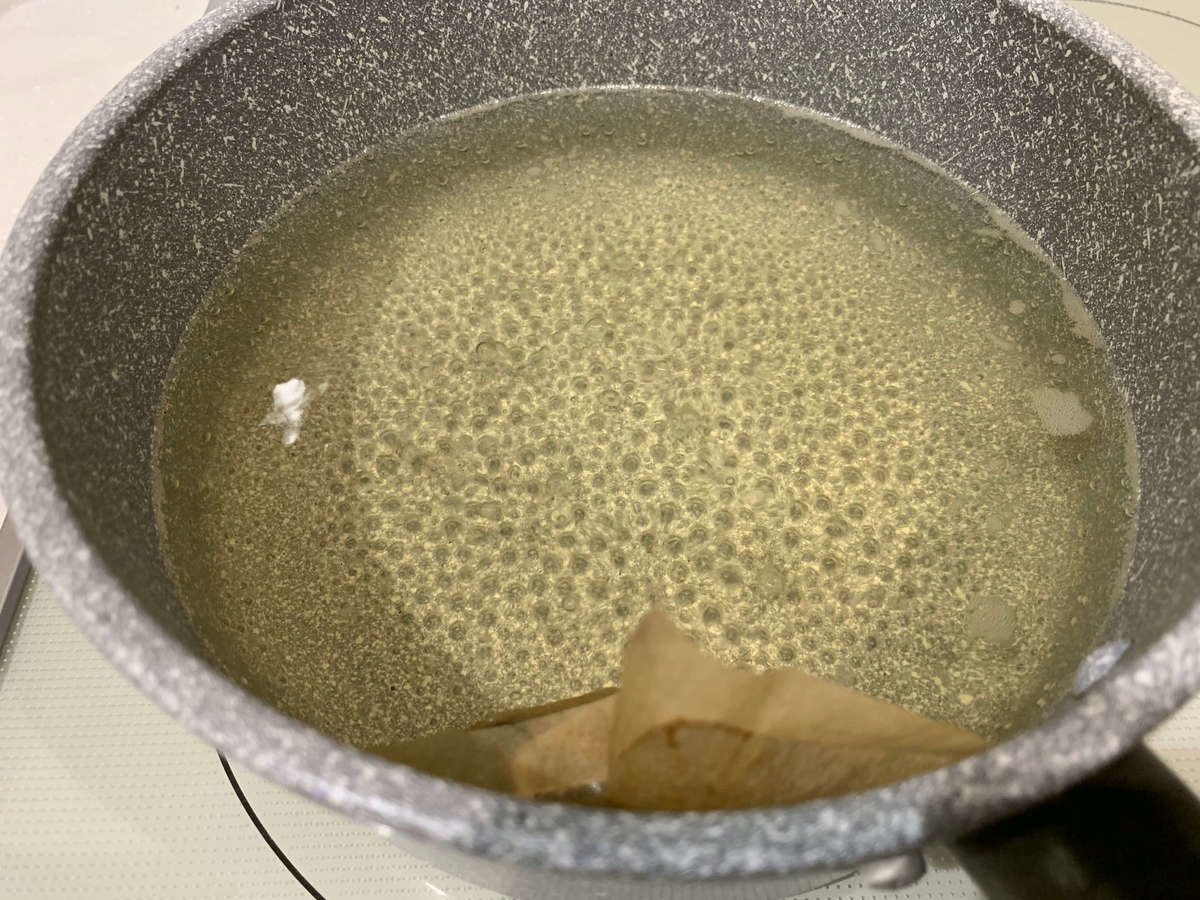 和風だしの作り方①水にだしパックを入れ、沸かす