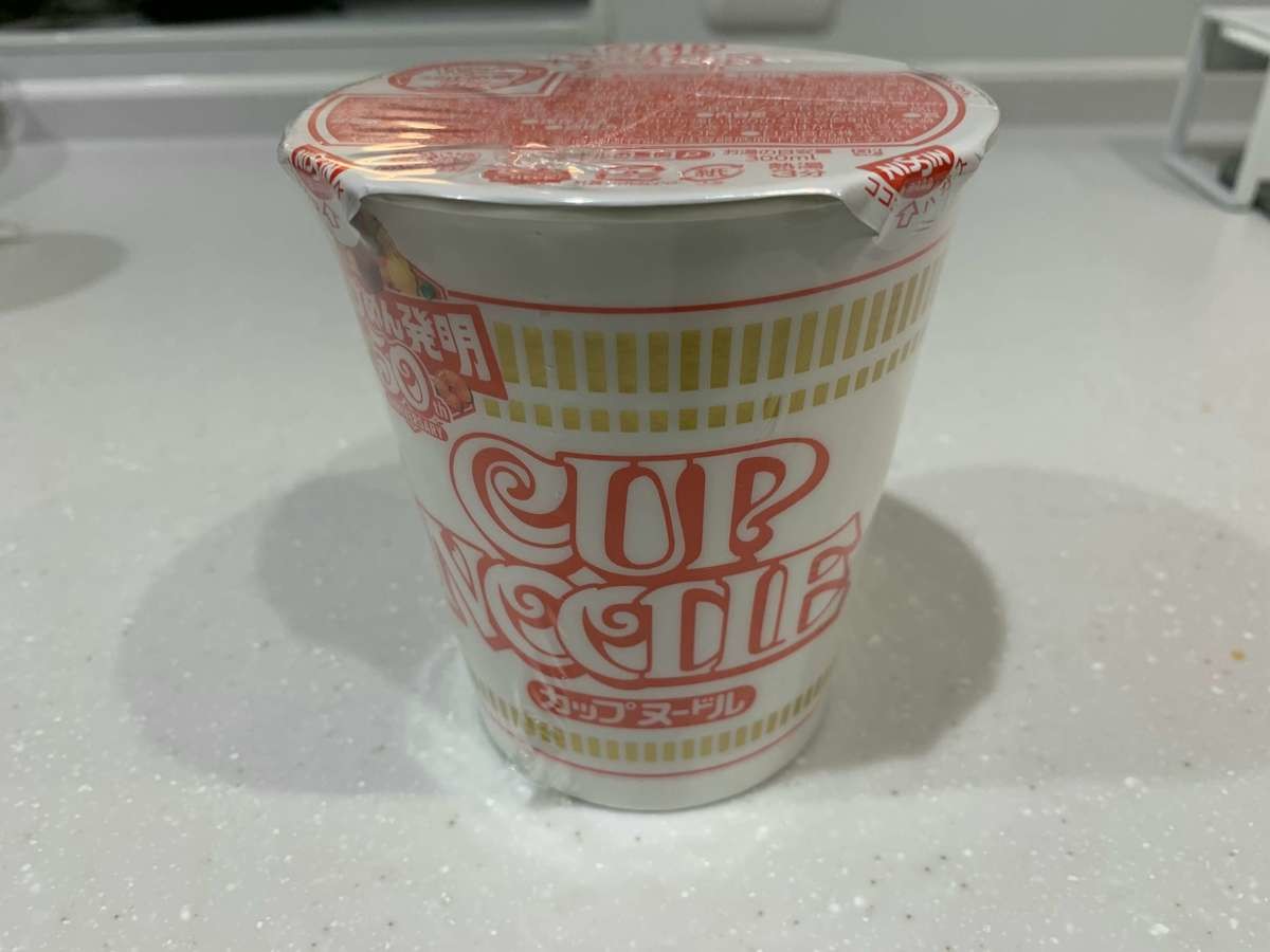 まずは、カップヌードルのフタを開けて......