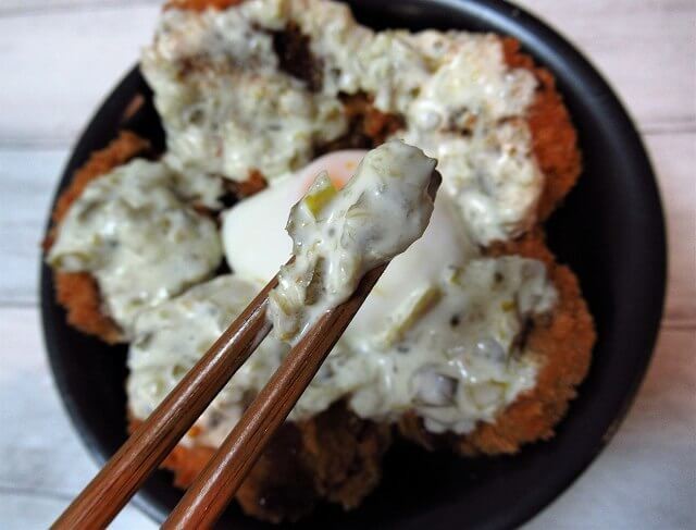 ただ、あくまで個人の感想ですが、より本格的なタルタルソースにするなら温泉卵ではなく、ゆで卵をタルタルソースに刻んで混ぜたほうがいいかもしれません。