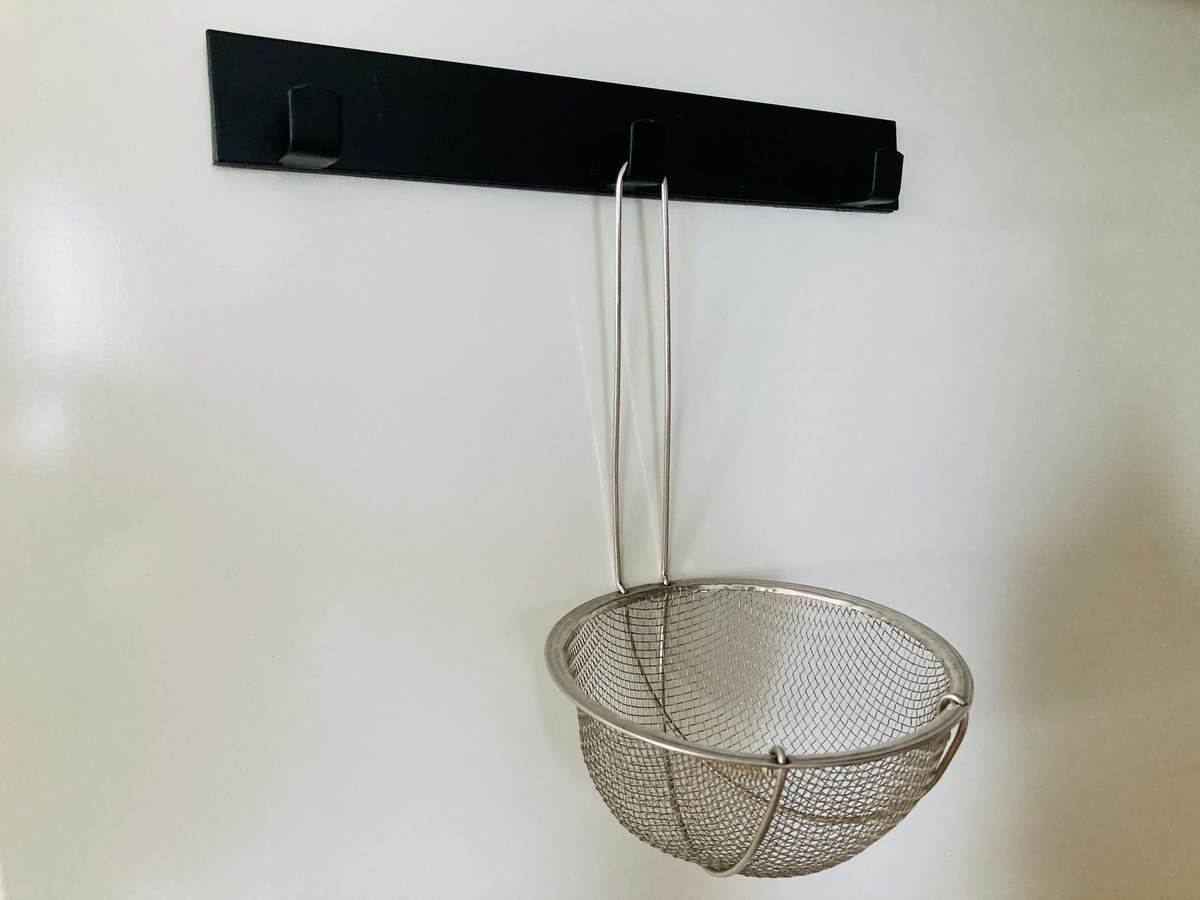 引っかける穴が大きいみそこしやザルはかけられました!我が家はみそこしの収納に困っていたので、引っかければ手軽に使えそう♪