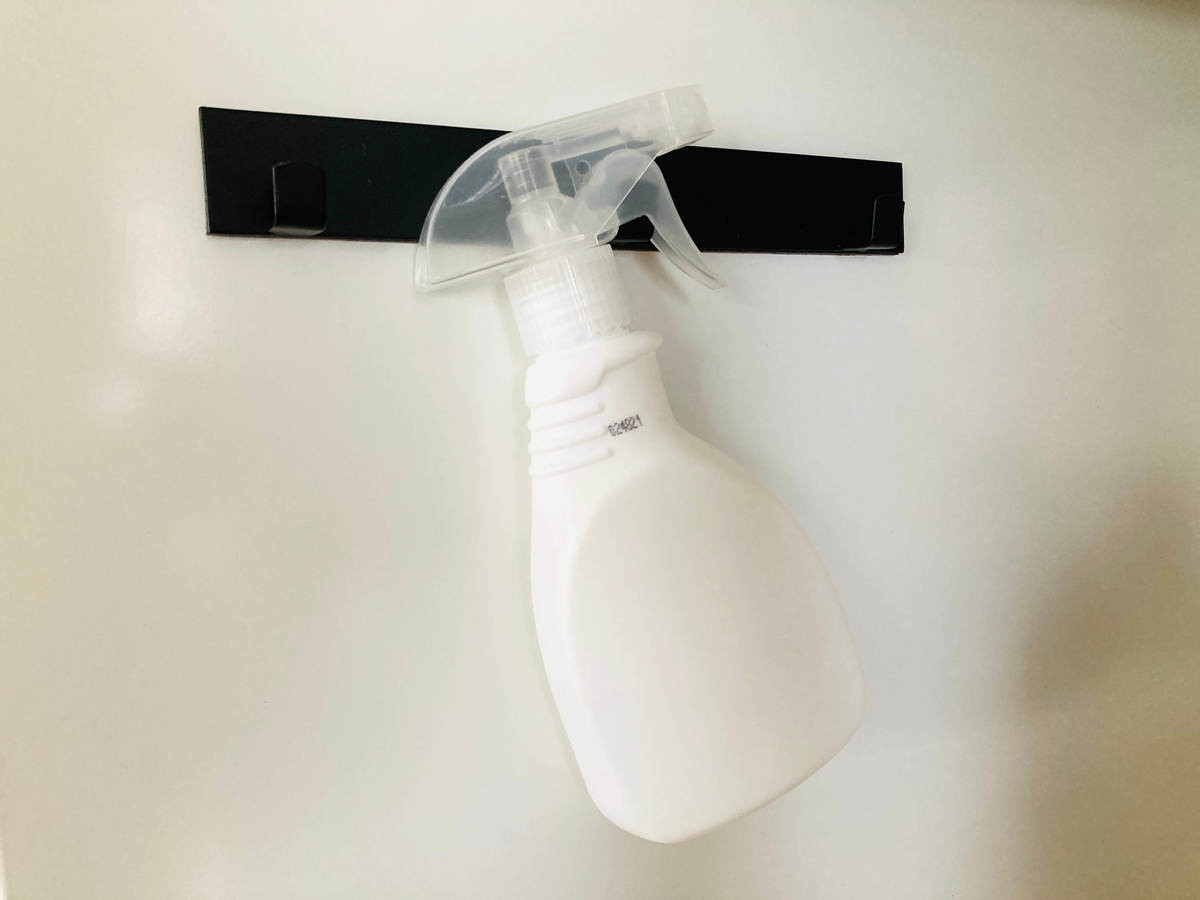 キッチン用のおそうじスプレーをかけてみると、見事にぴったり!こちらも耐荷重が1kgあるので、スプレーの種類別にかけて使うのもおすすめです。