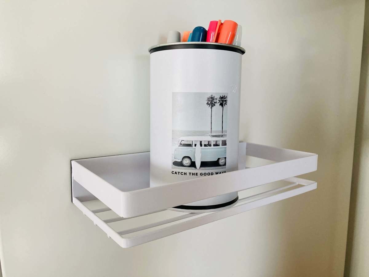 ペンがたくさん入ったペン立ても置けました!鉄製でしっかりしていて、マグネットも強力。