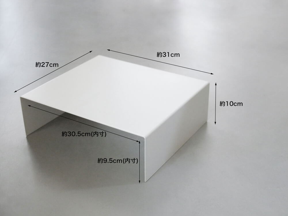 サイズは約W31×D27×H10㎝。 ラック上には10cm幅のファイルケースが3個。15cm幅が2個置くことができます。