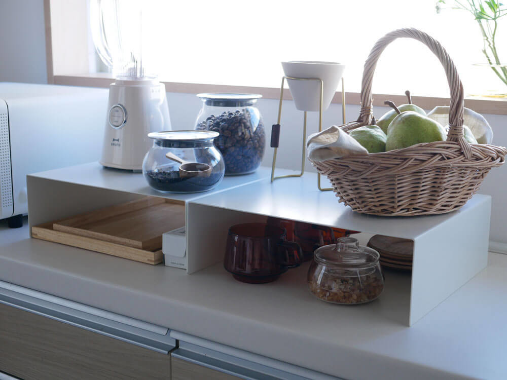 置くだけでデッドスペースが無くなり、置くだけで取り出しやすく仕舞いやすくなるから、キッチン作業がスムーズになること間違いなしの収納アイテムです。