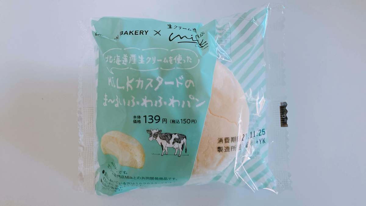 こちらはローソンベーカリーと原宿で大人気になった生クリーム専門店のミルクと言うお店のコラボ品です。その名も「北海道産生クリームを使ったMILKカスタードのま〜るいふわふわパン」‼︎こちらは税込み150円です。そのネーミングから“生クリーム”と言う印象が強いので冷蔵かと思いきや、常温でオッケー。