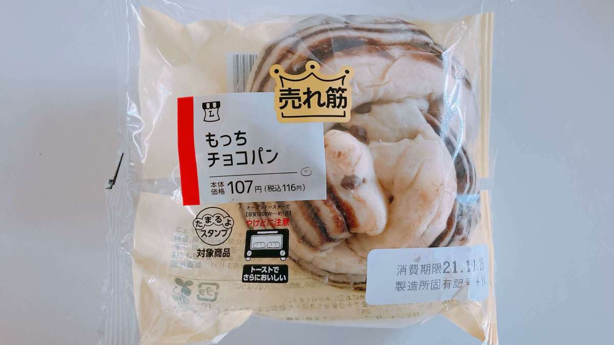 こちらはローソンの売れ筋パン「もっちチョコパン」税込107円です。満足感の得られるモチモチ系は私も大好きな種類のパン。見た目はデニッシュのようにチョコ生地と普通の生地が重なり合っている感じなのでこれがモチモチ?と思いながらも開封。