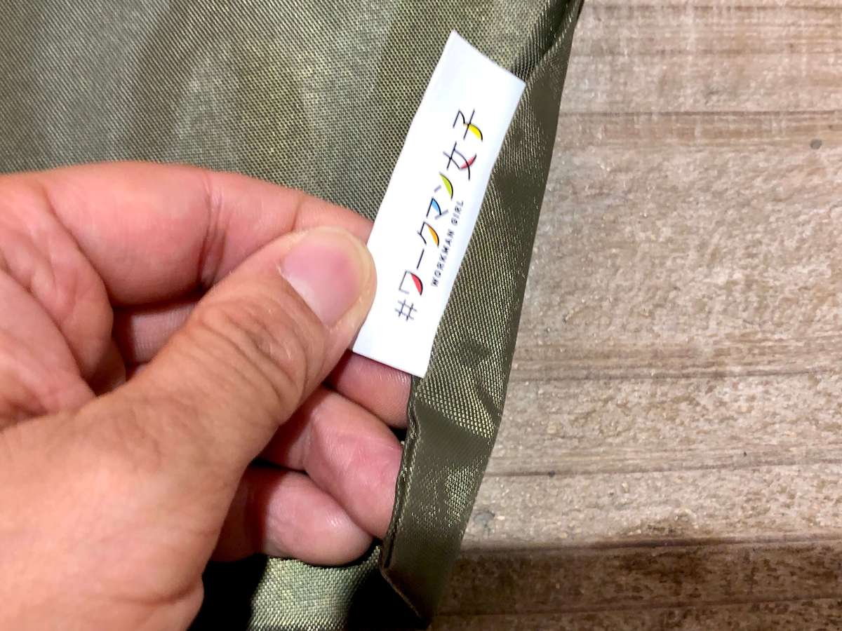 素材はポリエステルのような、シャカシャカした素材です。しかも横に、さりげなくワークマンのタグがついています!