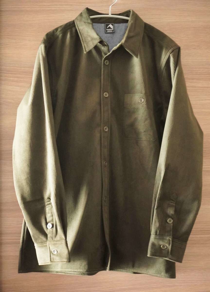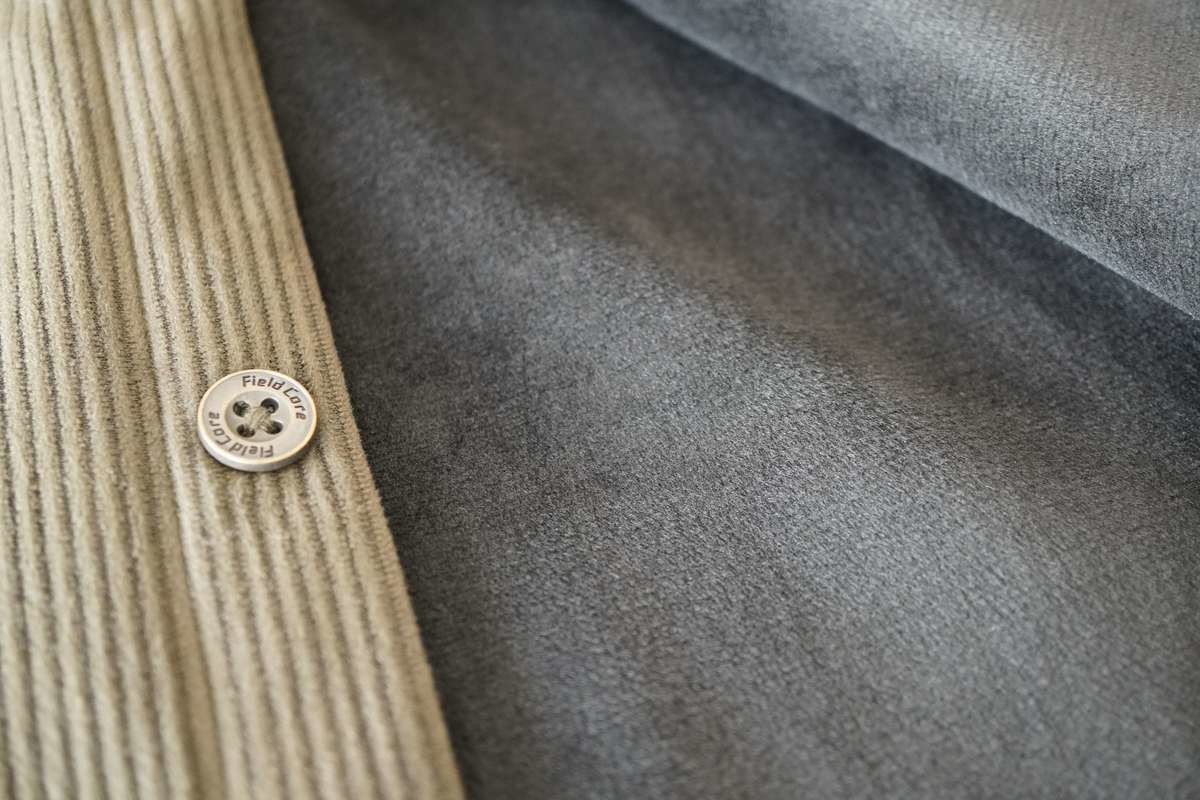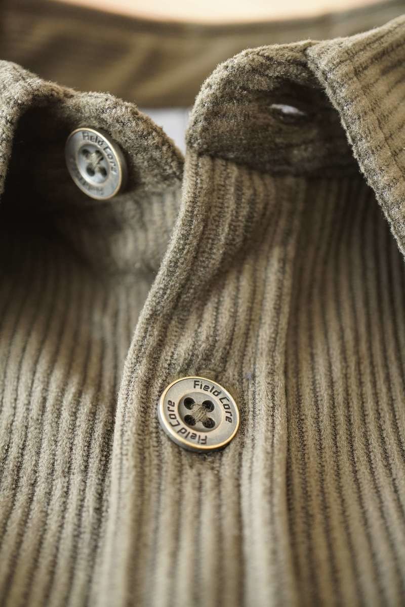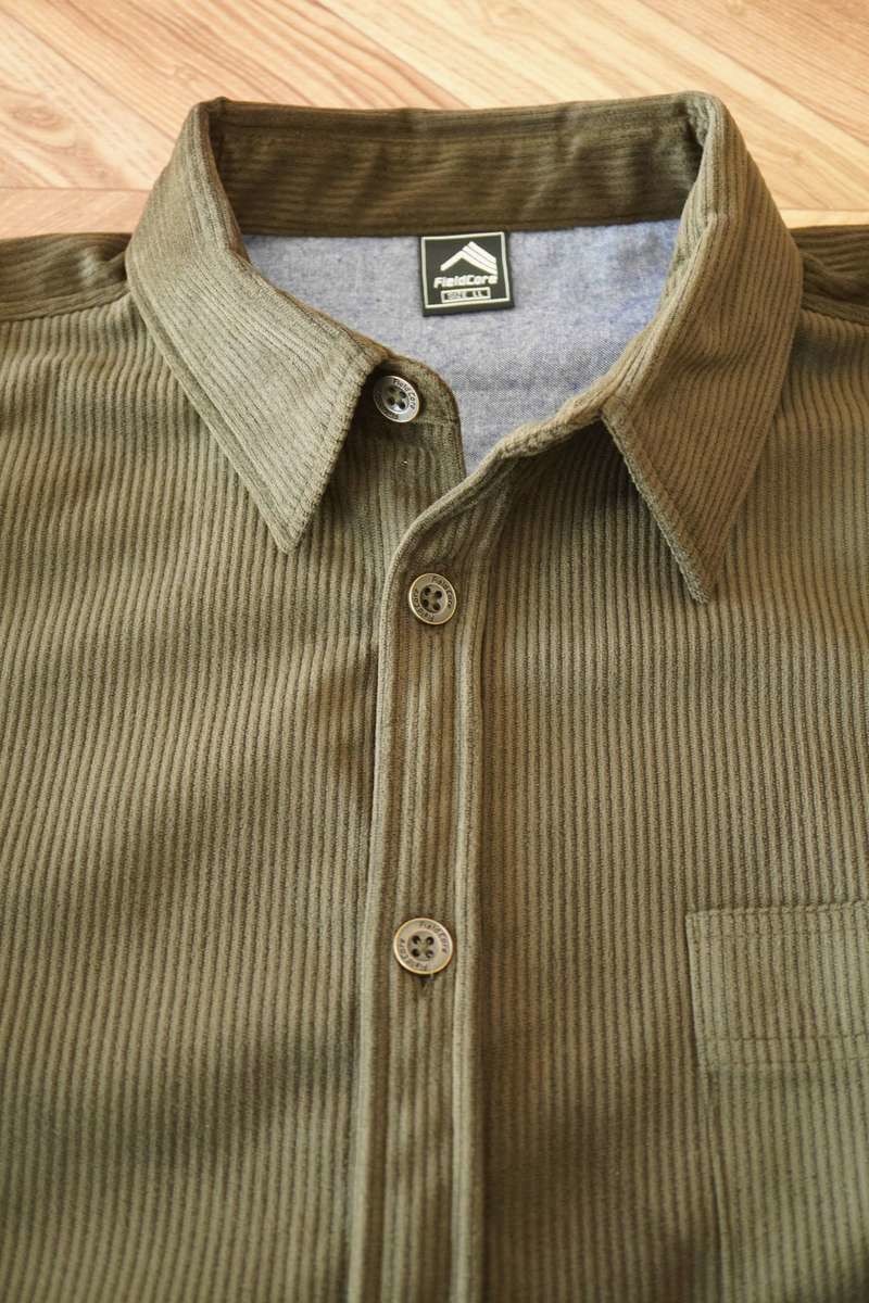 コーデュロイ素材のシャツは艶があり温かみがある質感で、触り心地がとてもよいです。生地は厚みがあり、しっかりしたつくりになっています。