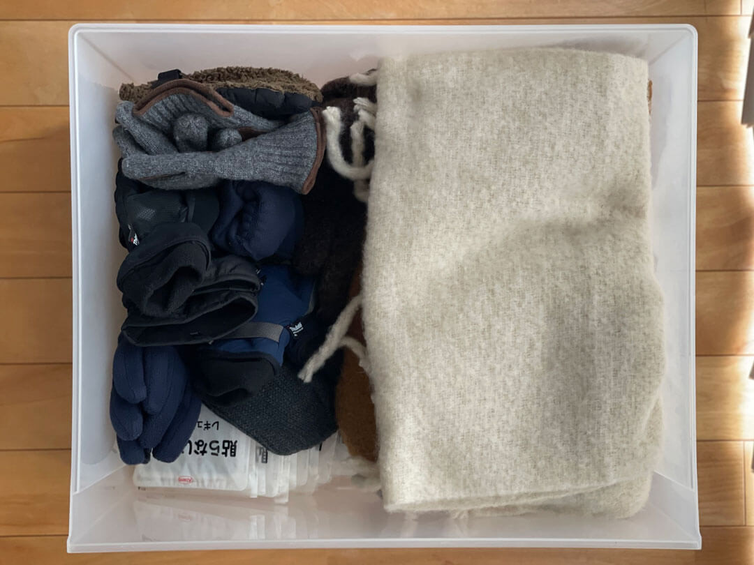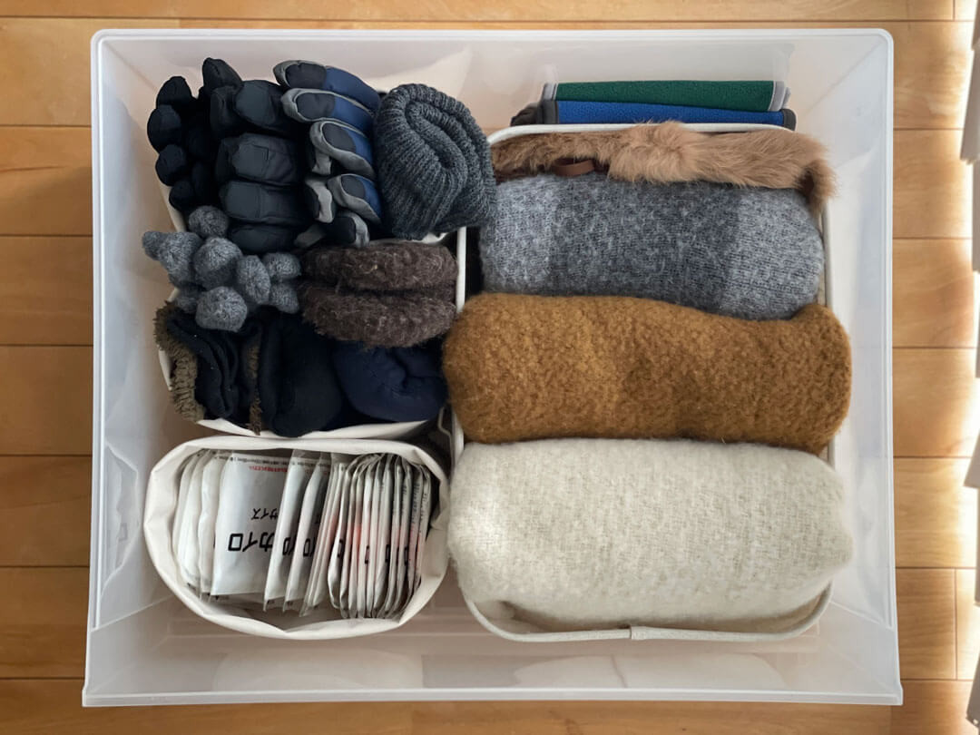 ここにぐちゃぐちゃになってしまう冬小物をカテゴリー分けします。