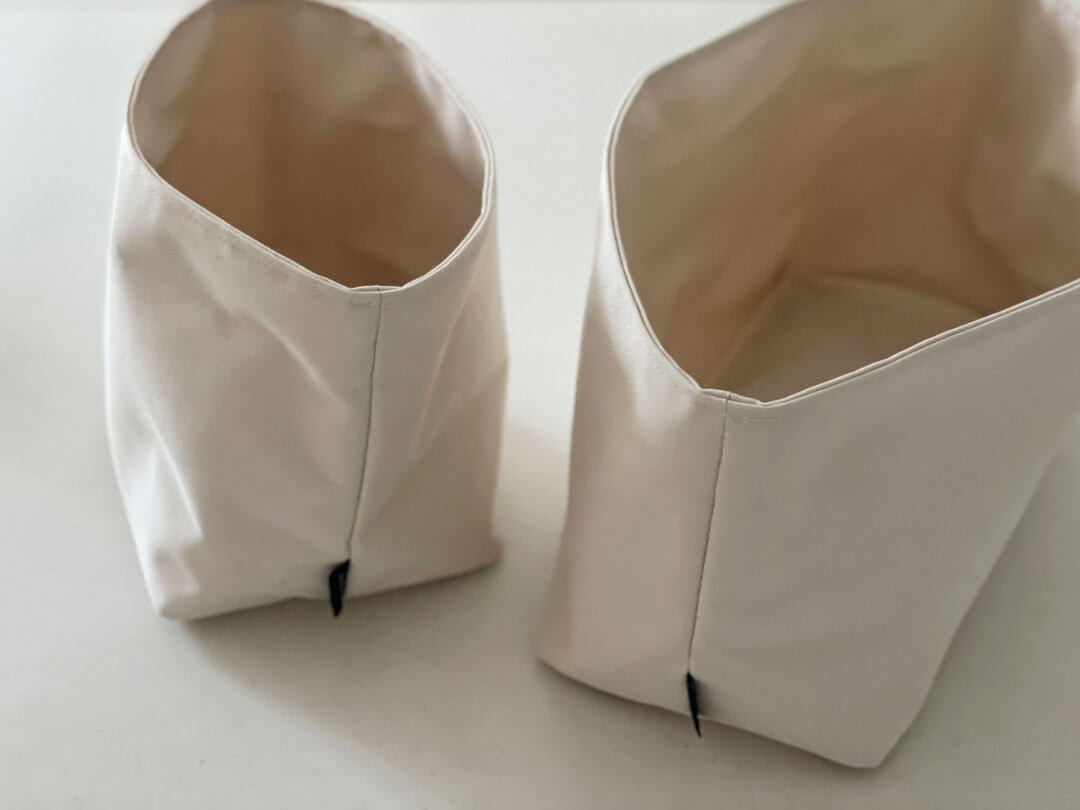 底面もマチがしっかりと縫製されているので、布製でありながら安定感のあるボックス型を保ちます。