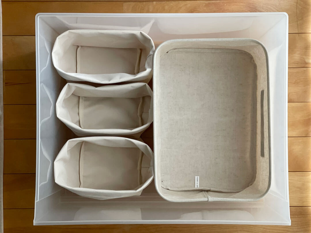 そんな時は、形がしっかりしたボックスをはめ込むことから離れ、布製のボックスを使ってみるのはいかがでしょう?