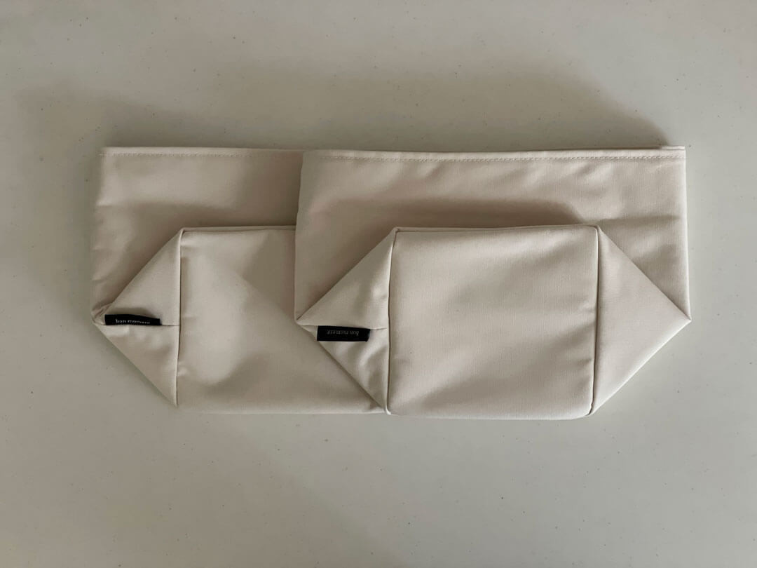 少しくらいパンパンに詰めても、布製だから中のモノの形にぴったり馴染んでくれる融通の良さ。