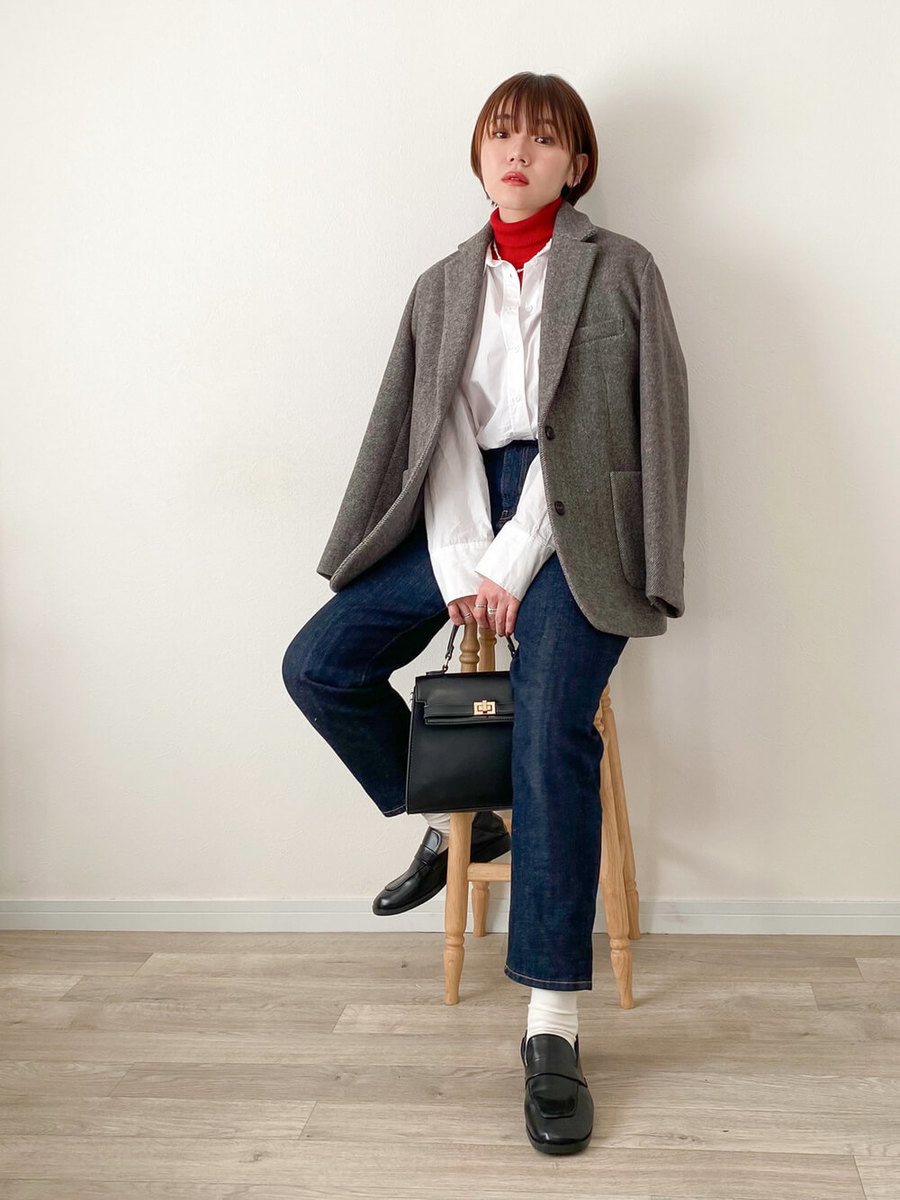 タートルネック×シャツの今季らしい冬レイヤードに、ハンサム感のあるテーラードジャケットを羽織って。