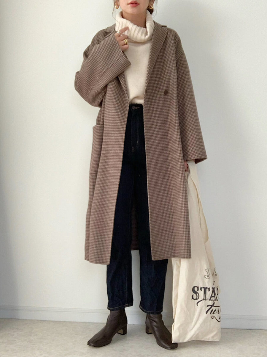 オーバーサイズのタートルニットもデニムにインして、ハイライズで脚長アピール♪