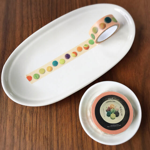 レトロなカラフルなあめ玉が可愛いくて、手帳やラッピングにも使える「レトロマスキングテープ」です。ベースカラーが薄ピンクなので柔らかい印象ですが、ポップな"あめ玉"が良いアクセントになっている商品ですよ。