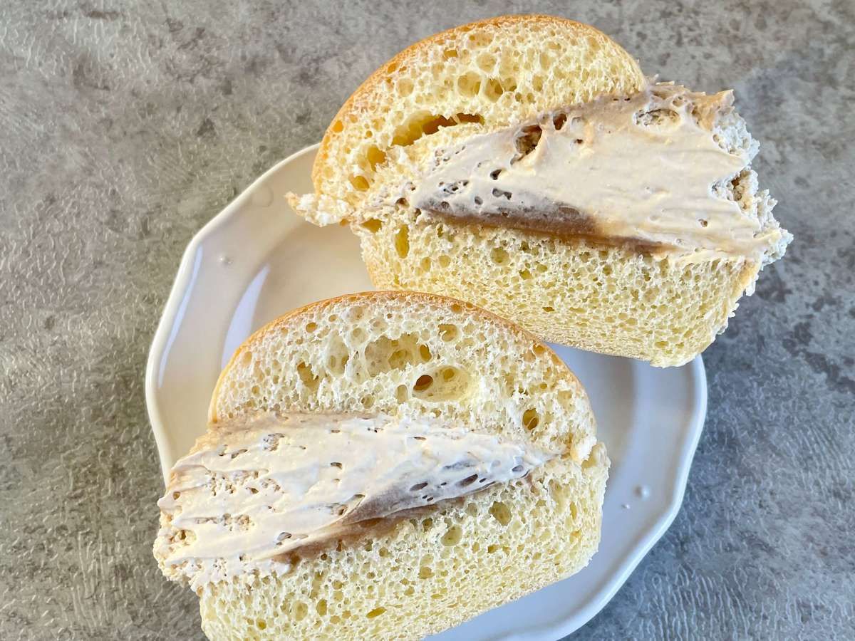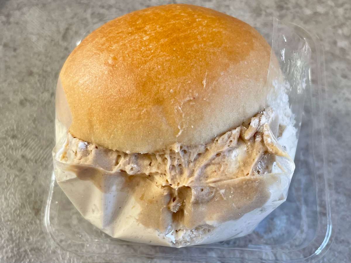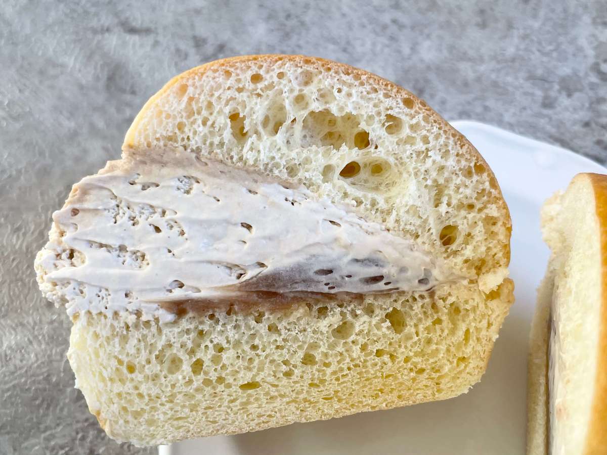 ブリオッシュパン生地はふんわりしっとり、表面がツヤツヤとしています。少々パサつきはありますが、クリームと混ざると気になりません。