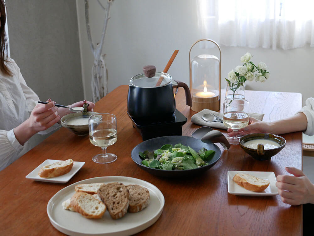 『沸かす・煮る・炒める・茹でる』ができる、ケトルと鍋のいいとこ取りの「コトル」は、お湯を沸かすことから野菜を使った簡単料理、チーズフォンデュまでテーブル上でできちゃうのが魅力。