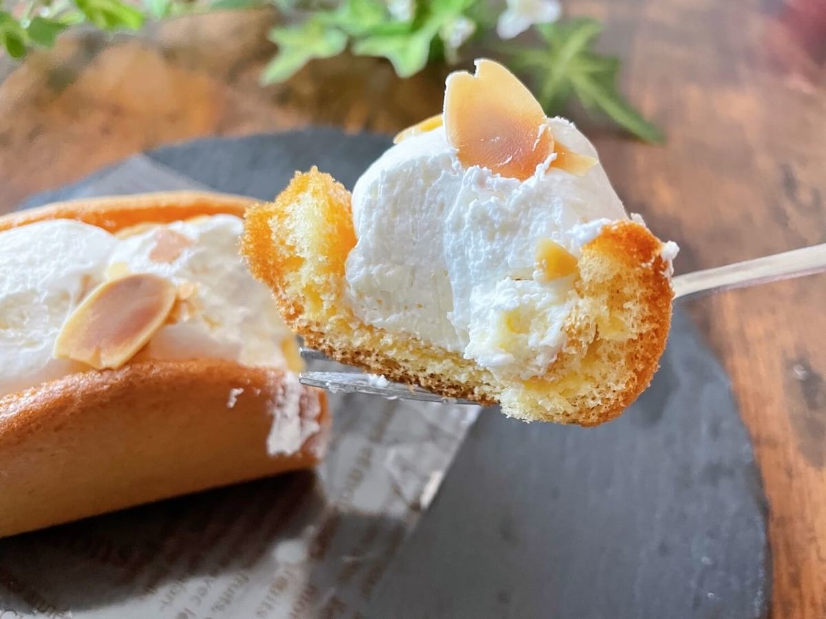 卵白や米粉を使用したふわふわ食感の生地で、こだわりのふんわりホイップを包んでいます。