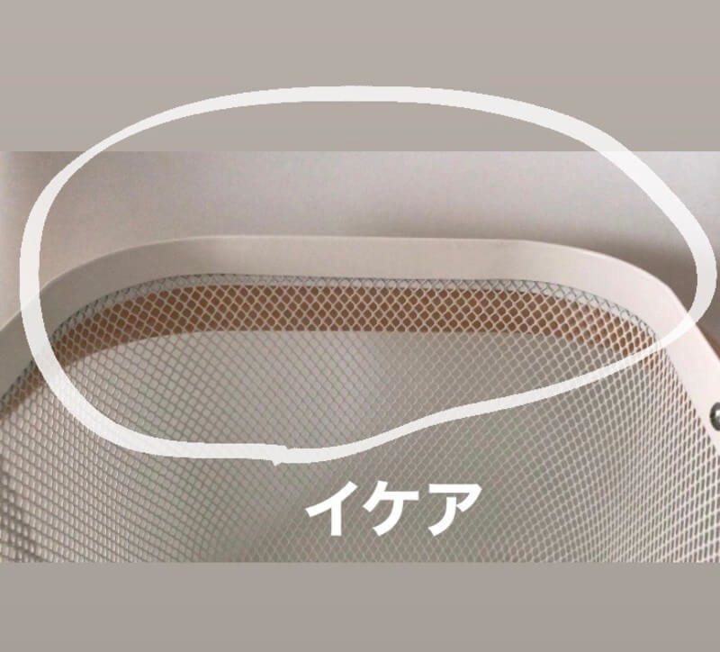 同じホワイトであってもワッツは真っ白、イケアのはアイボリーに近いお色です。スチールの編み目も違います。