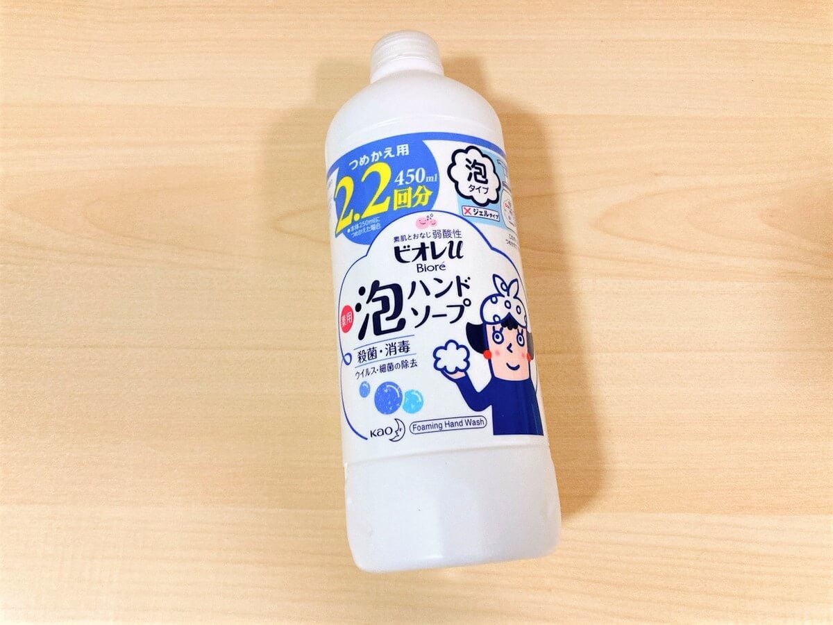 コロナ禍で消費量が増えた泡ハンドソープも、2.2回分の大容量サイズ。 これだけあれば、しばらく買わなくて良さそうです。