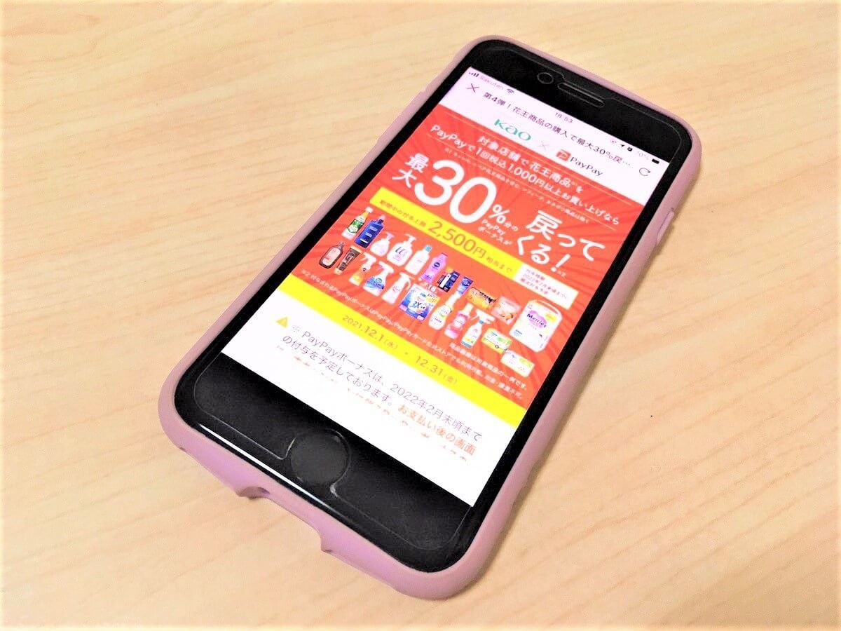 花王商品を中心に購入、PayPayで支払うだけで、後から30%相当分得しちゃうというもの。