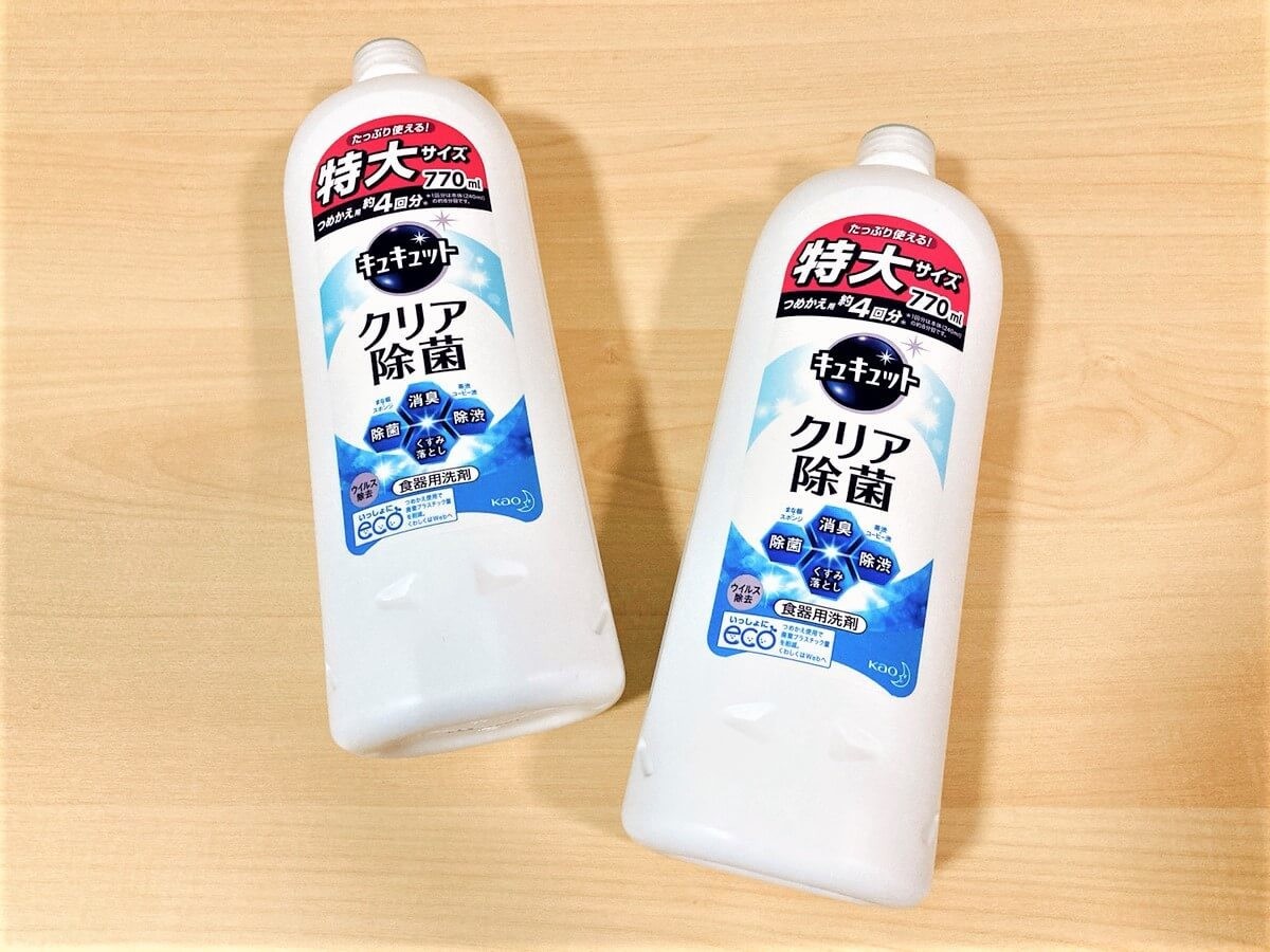 食洗器がないわが家は手洗いなので、食器用洗剤がすぐになくなります。 770mlの大きな詰め替えボトルを2本、まとめ買いしておきました。