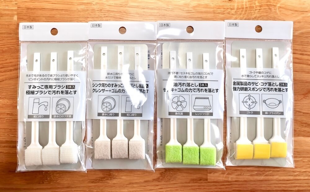 4種類あれば、おうちの気になる汚れのほとんどをカバーできるはず。汚れに合わせて使い分けできるので、見かけたら4種類まとめ買いがオススメです。スポンジシリーズとあわせて、是非試してみてくださいね!