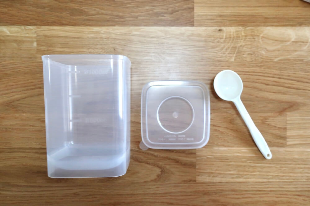 一見なんの変哲もない保存容器のようなこちらが「なるほどパック」。これだけで手作りヨーグルトが作れるとは驚きです。計量スプーンもついているので、手軽に始められますね。