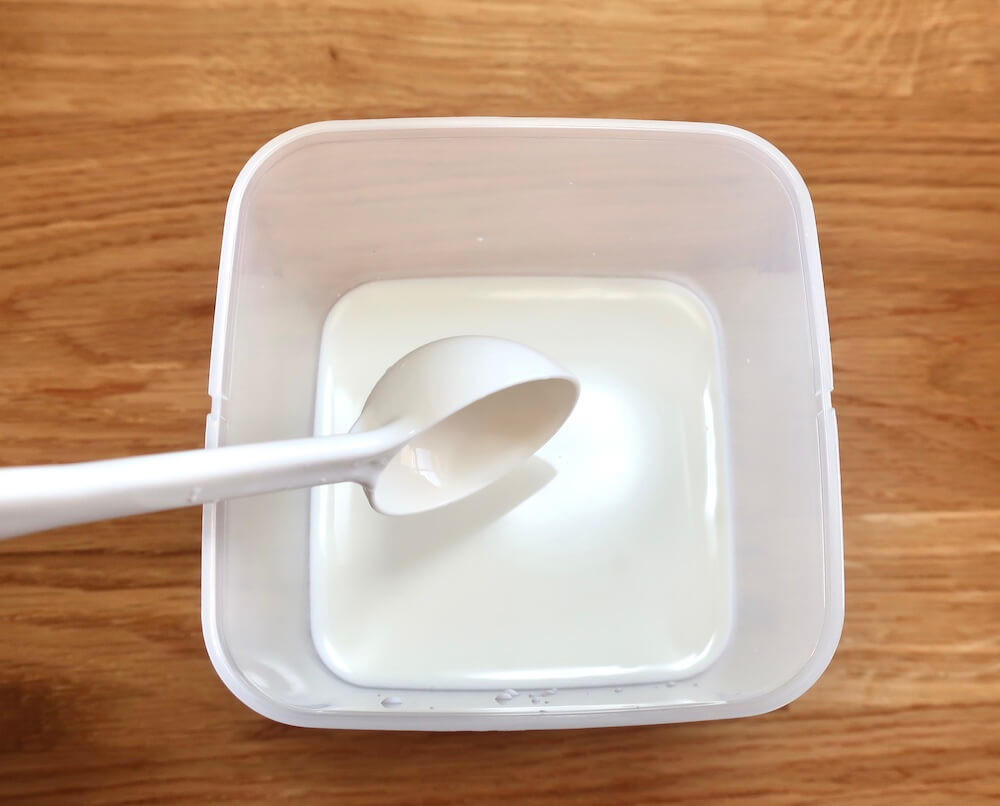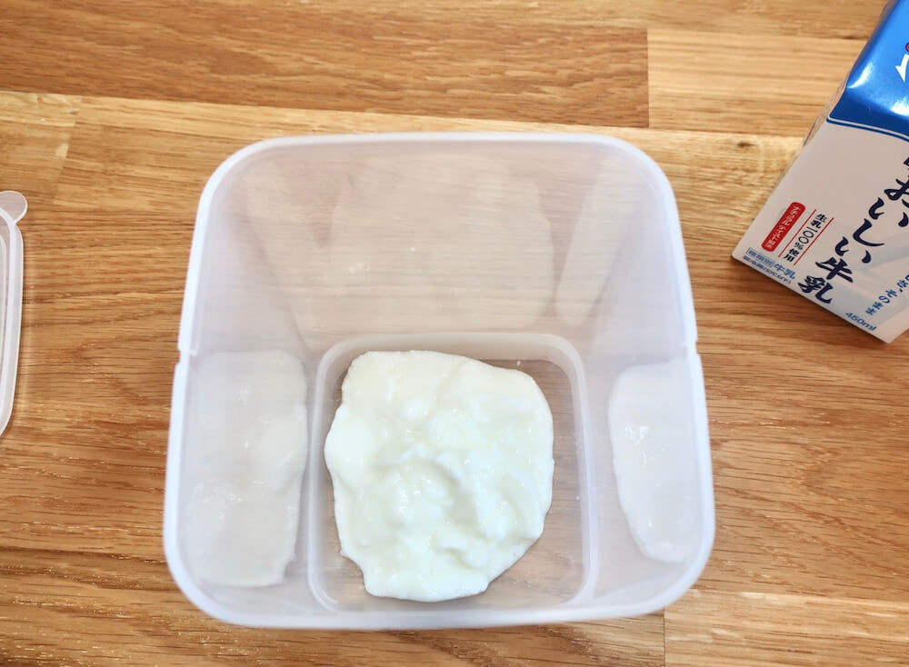 ヨーグルトと牛乳が混ざるようにしっかりかき混ぜたら、あとはフタをきっちり閉めて常温(20〜30℃)の部屋に放置するだけ!