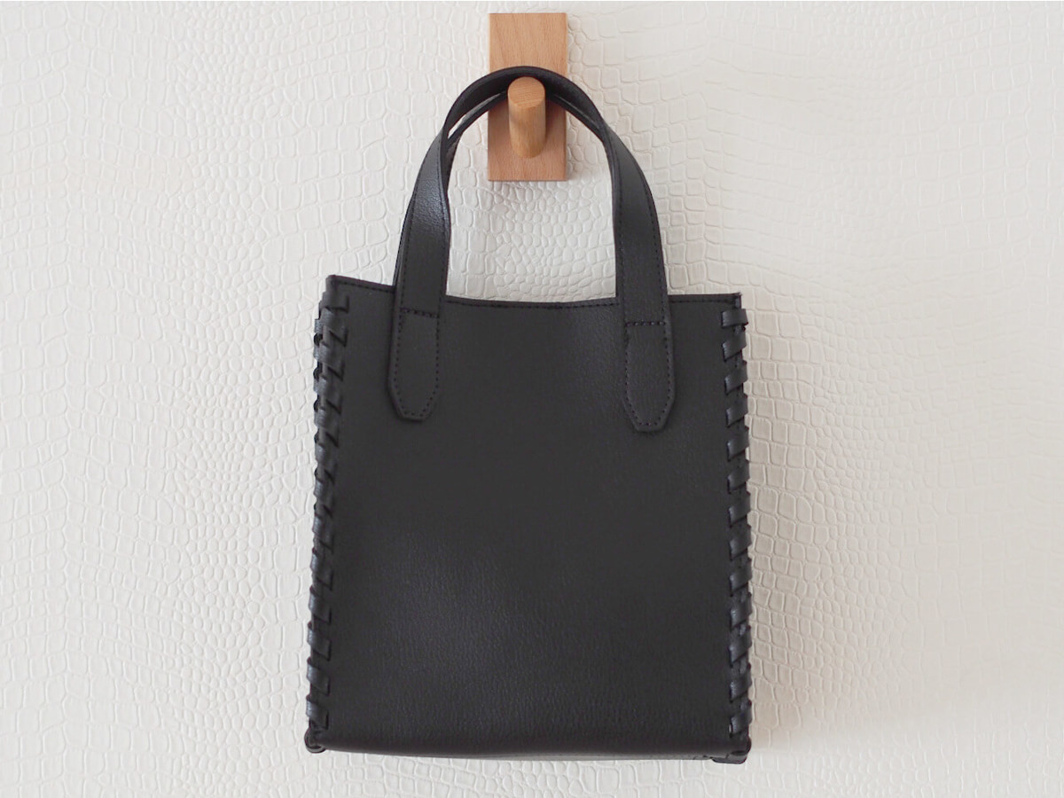 縦長のスクエアバッグは、基本色の黒で合わせやすさ抜群。