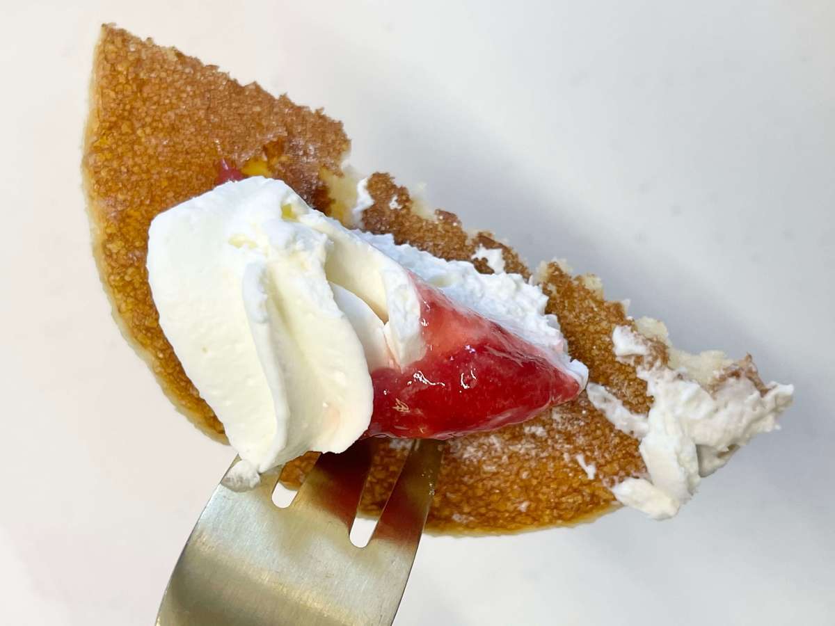 ですが、甘酸っぱいストロベリーソースとコクのあるホイップクリームと一緒に食べれば気にならなくなりました。