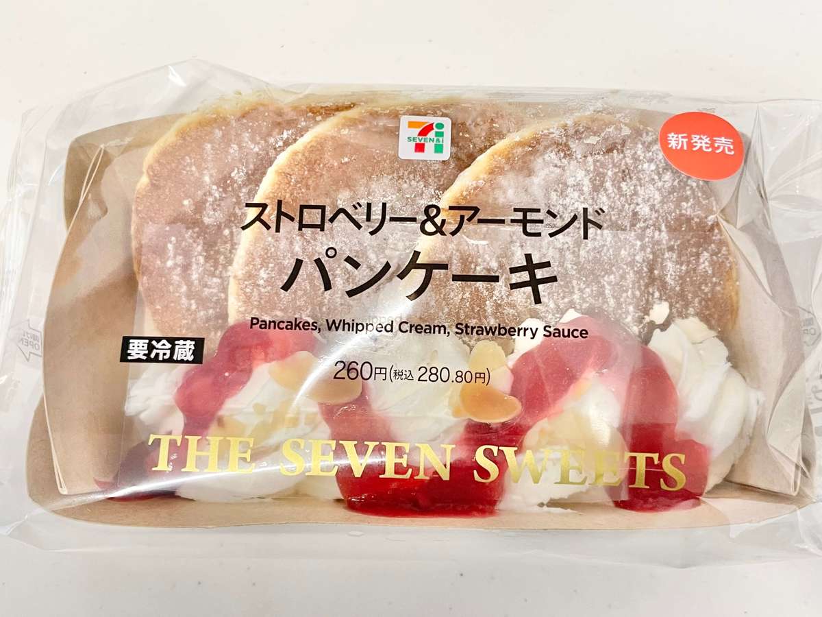 店頭で思わず二度見!【セブンイレブン】「ストロベリー&アーモンド パンケーキ」ひときわ目立ってる「食べ応えもコスパも神」