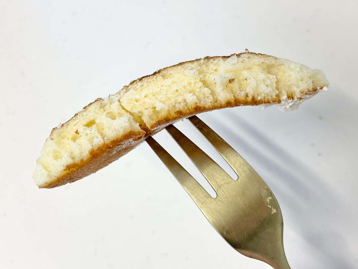 フォークを入れると、ふんわりと柔らかいパンケーキ。単品で食べるとややパサつきが気になります。