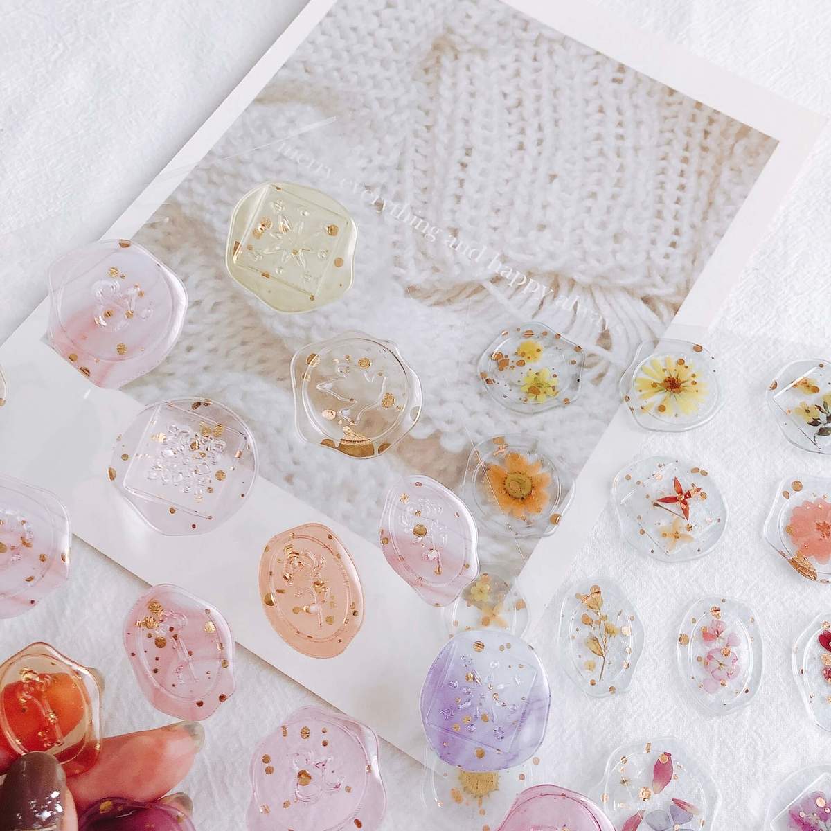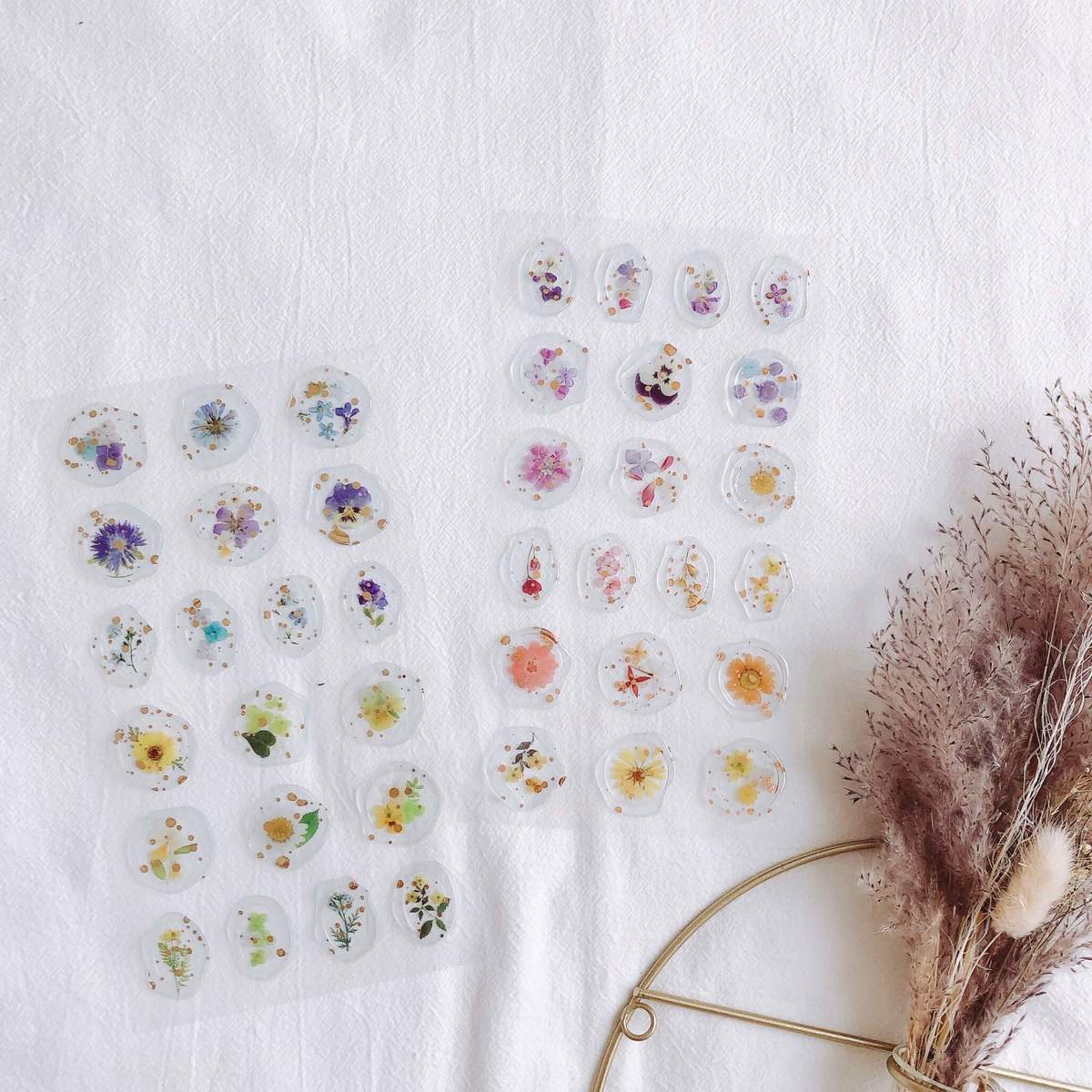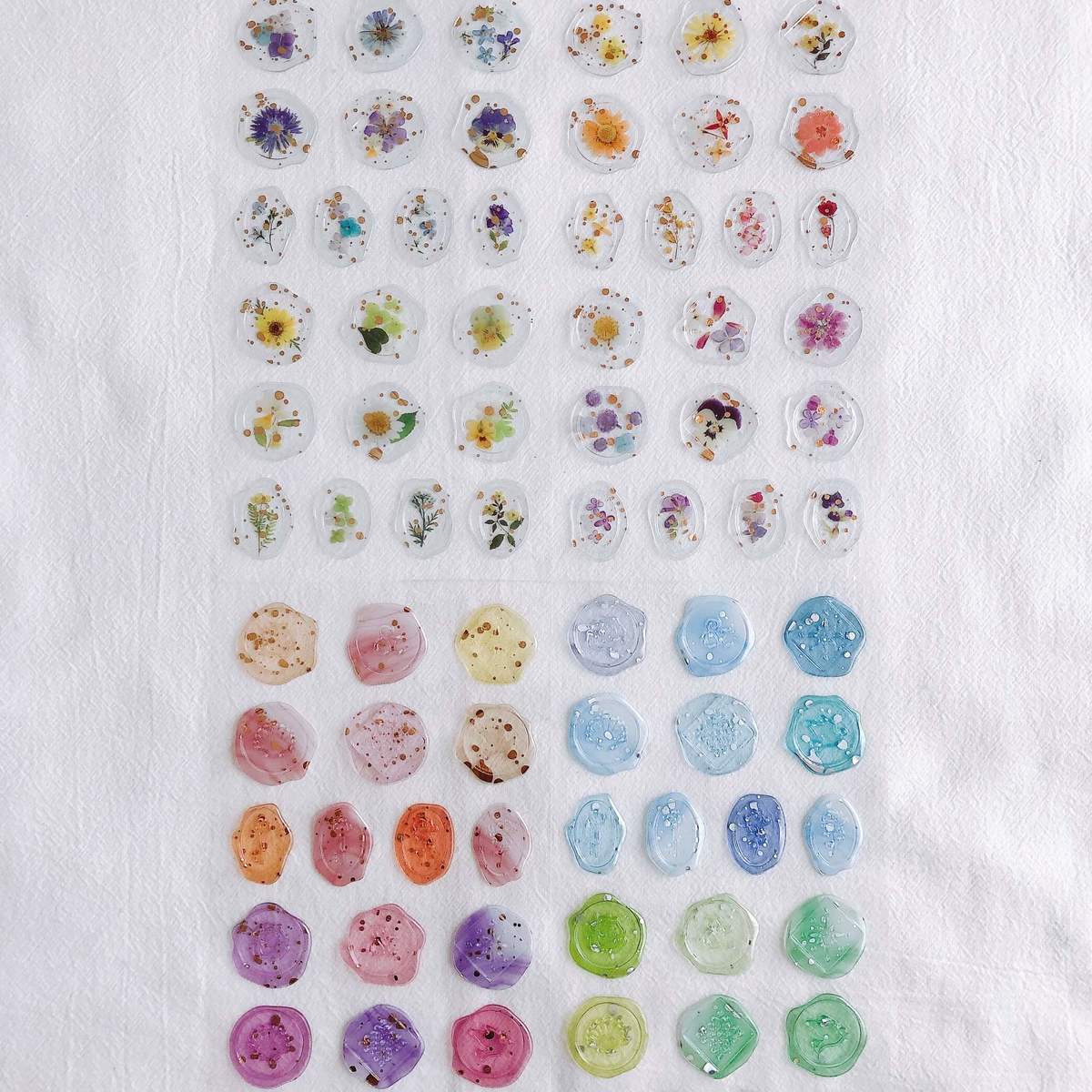 もう1種類は本物の押し花が入ってるかのようなフラワーデザインのシールシーリング。こちらもピンク系とブルー系の2カラーです!