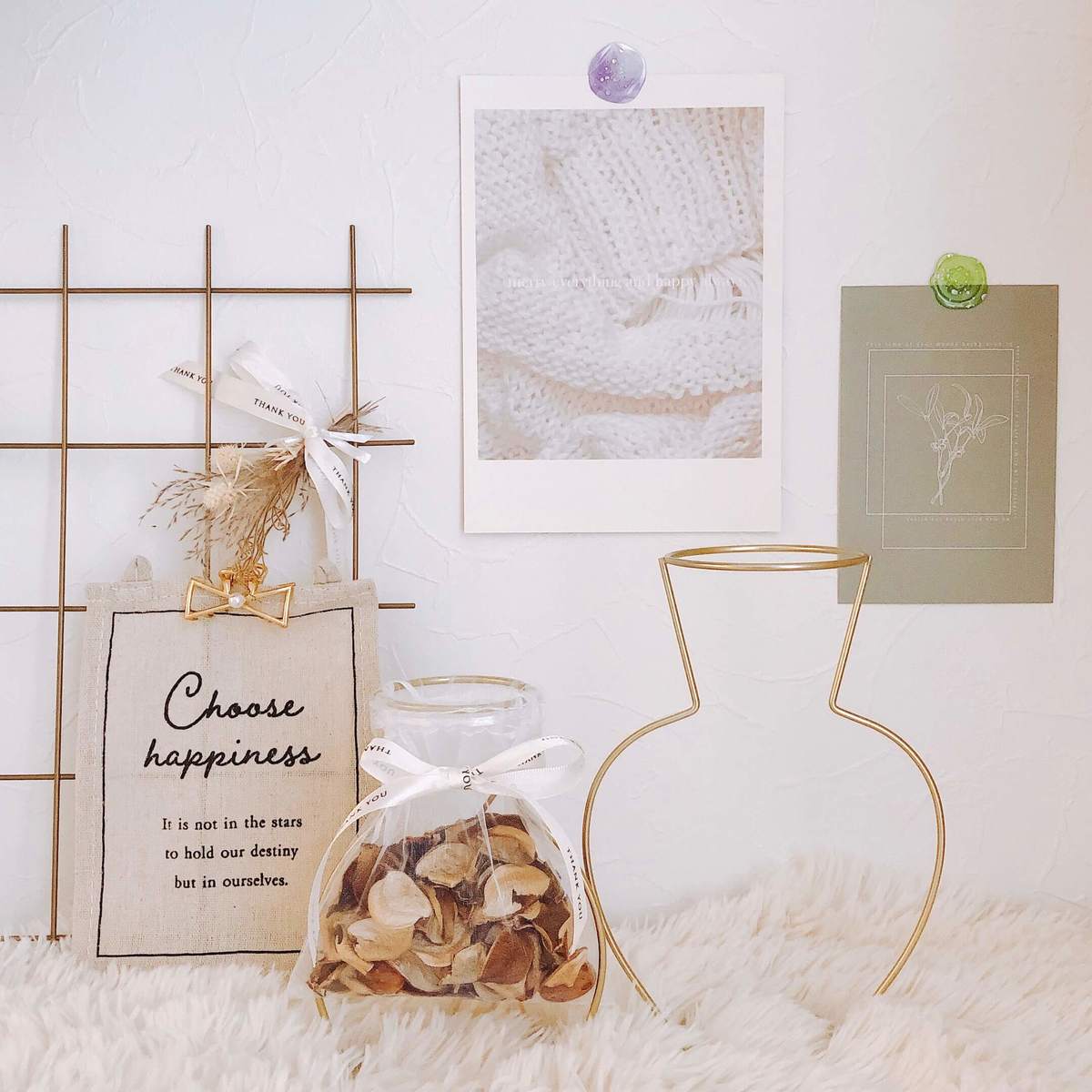 ただのガゼット袋も貼るだけで素敵になりました。ドライフラワーやミニブーケを添えても素敵です。