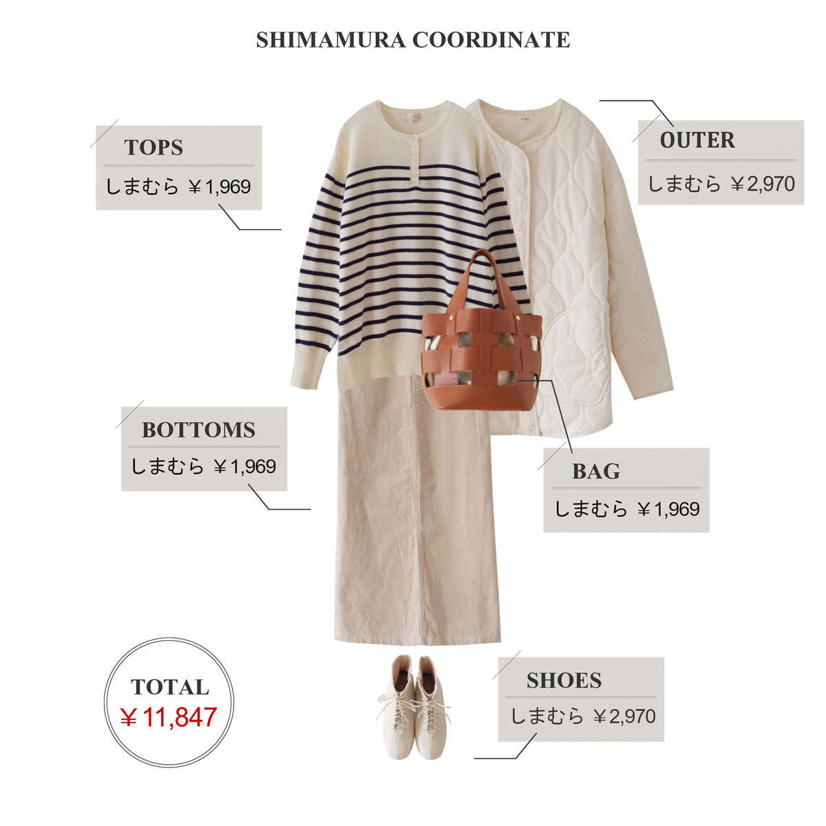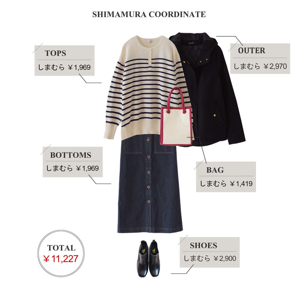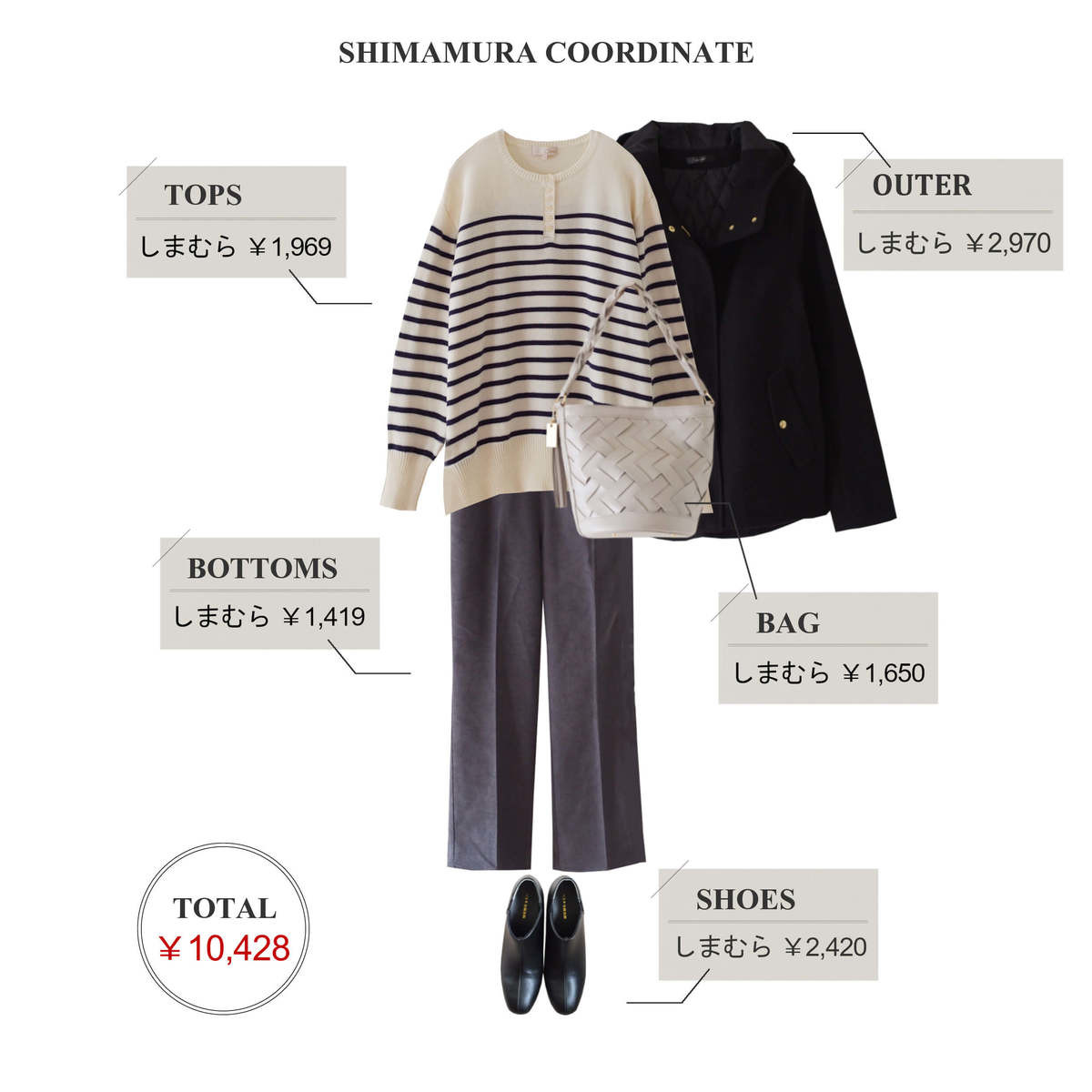コーデに使用したアイテムは、すべて「しまむら」のものです。
