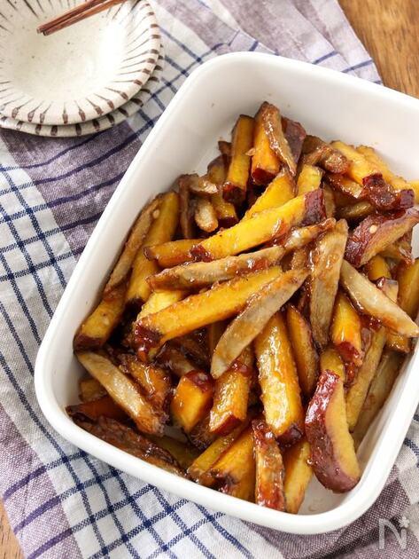 こちらのさつま芋とごぼうの甘辛炒めは、食物繊維が豊富で腹持ちも良いです。ニンニク風味の甘辛味で、一度食べたら箸が止まらない美味しさ!積極的に食物繊維を摂りたい時やダイエット中にぴったりの一品です。